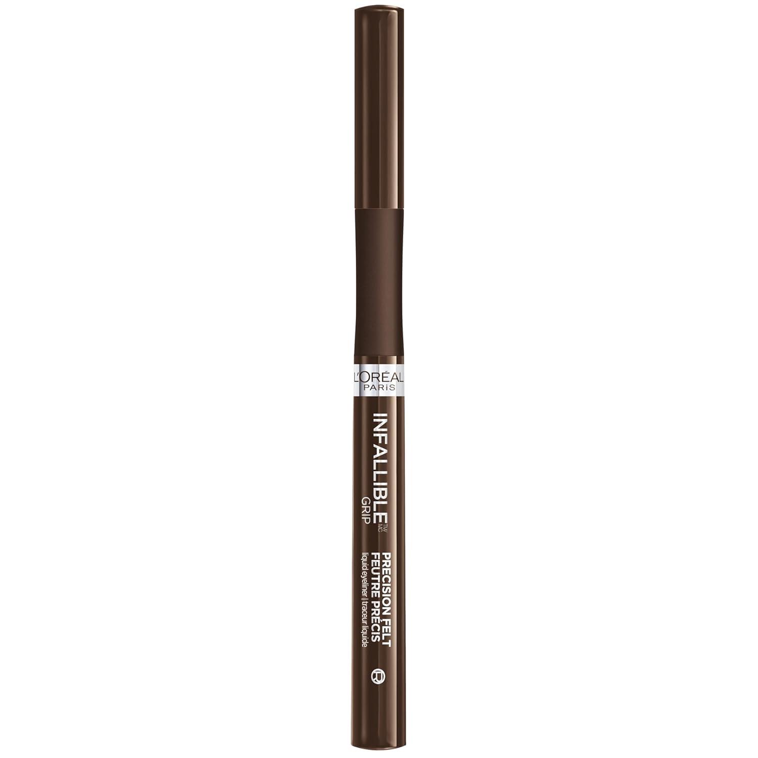 Up to 30HR wear. Easy Application. Waterproof, smudge-resistant. Define and line your eyes with vibrant color that lasts. L’Oreal Paris’s Infallible Grip liquid eyeliner glides effortlessly across lids to deliver a smudge-proof, sharp line that lasts up to 30 hours. With five shades to choose from you can find a color with hyper-pigmented intensity for any classic or bold look.