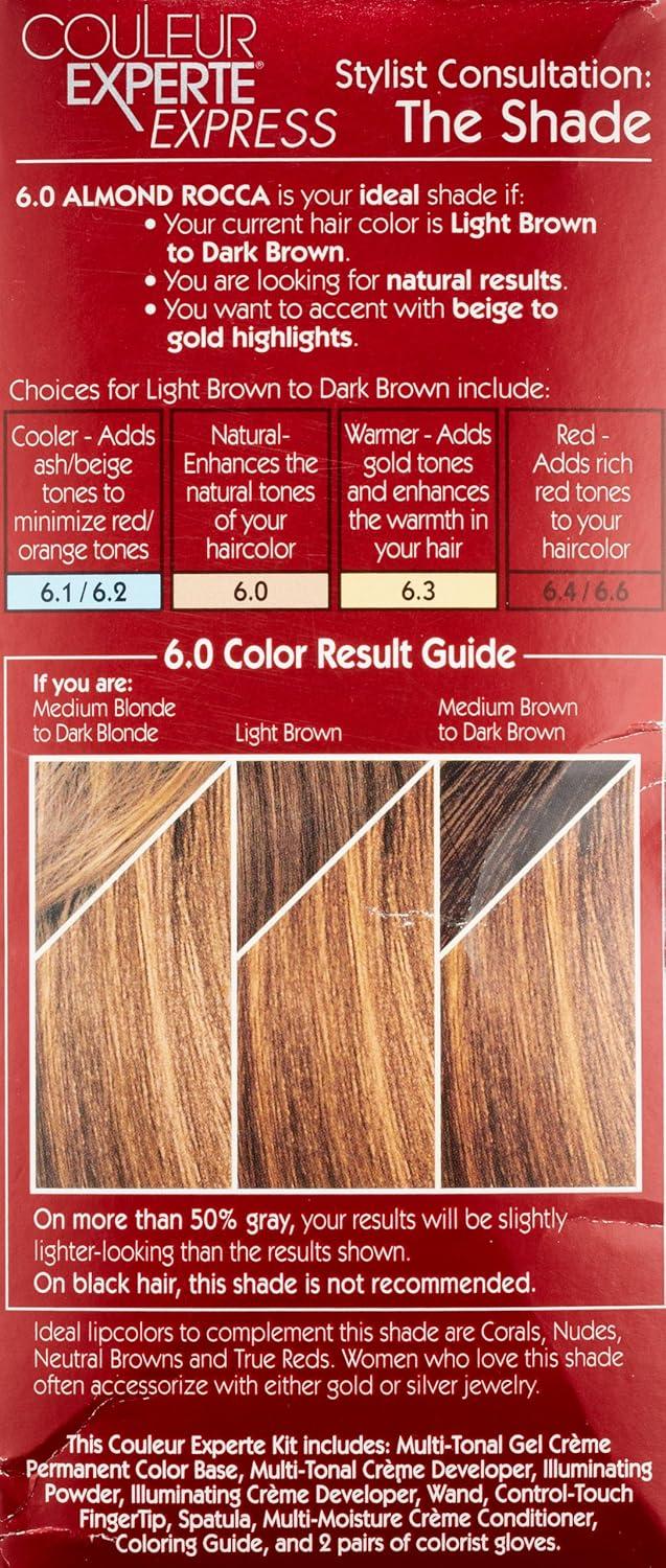 L'Oreal Paris Couleur Experte 2-Step Home Hair Color and Highlights Kit, Toasted Coconut(6 Light Brown/Almond Rocca)