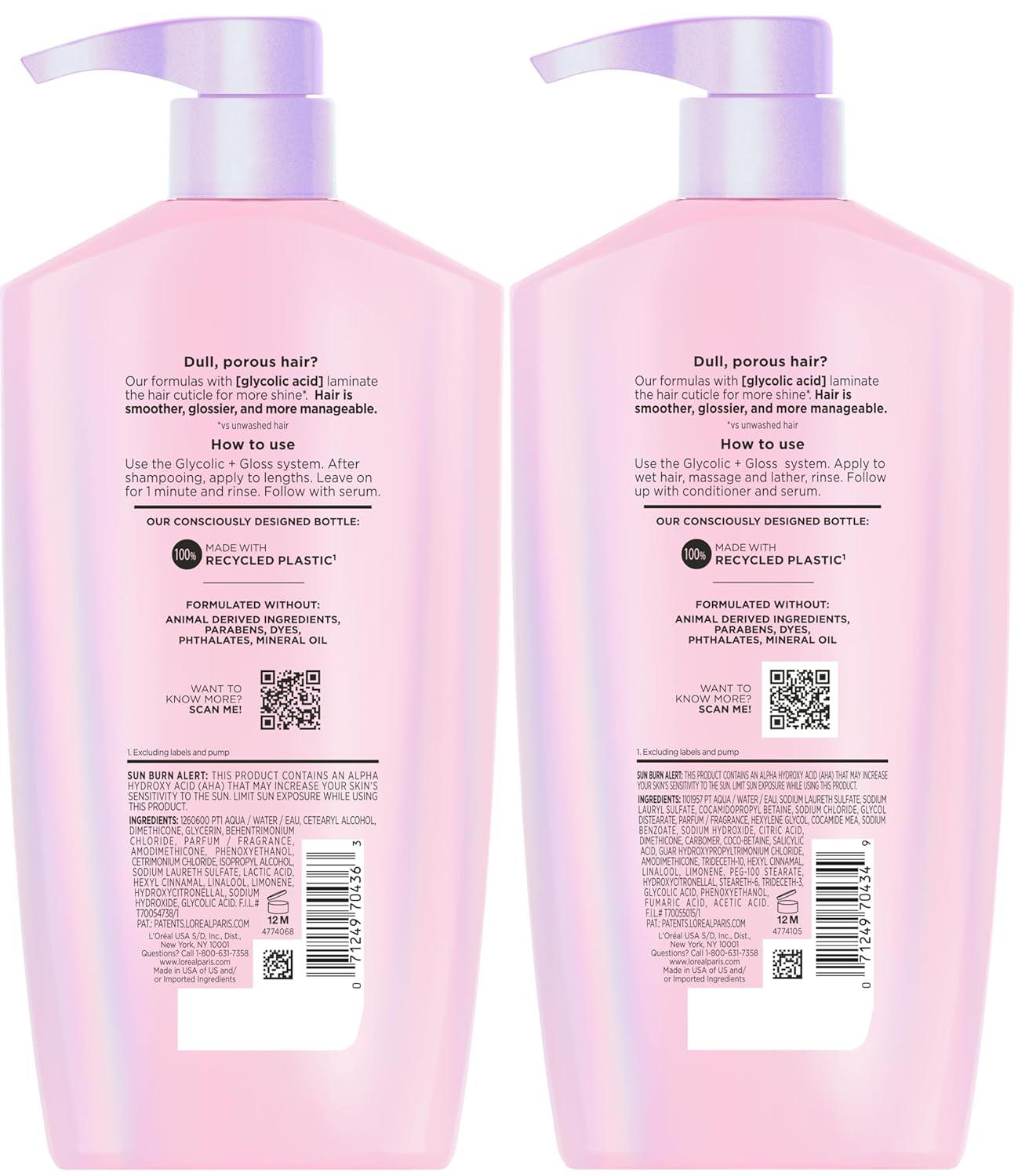 L'Oreal Paris Elvive Glycolic + Gloss Shine Boosting Shampoo and Conditioner Set, Cleanses and Smooths Dull, Porous Hair Into High-Shine, Glossy Hair, 1 Kit