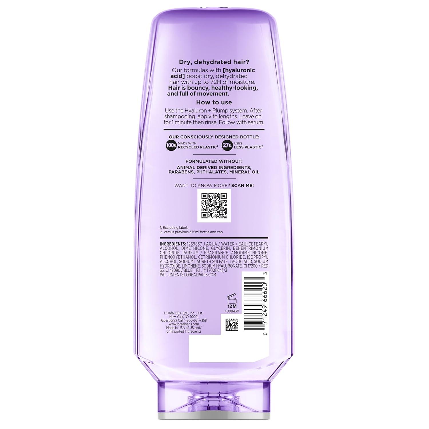 L'Oreal Paris Elvive Hyaluron Plump Hydrating Conditioner for Dehydrated, Dry Hair Infused with Hyaluronic Acid Care Complex, Paraben-Free, 12.6 Fl Oz