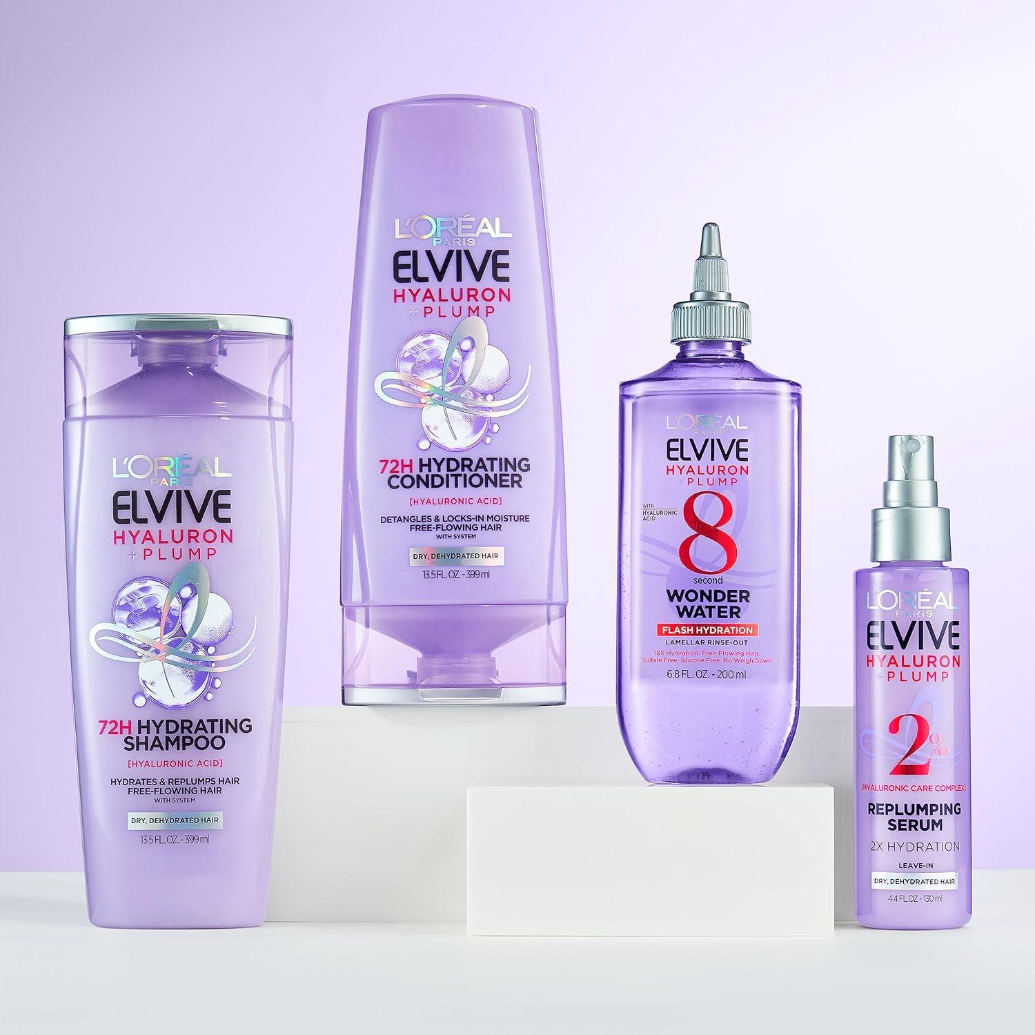 Hydrating Routine for Dry and Dehydrated Hair: Gently cleanse with paraben-free Elvive Shampoo, prime with Flash Hydration Wonder Water, then apply hair conditioner to detangle and moisturize. Finish with Replumping Serum to revitalize hair