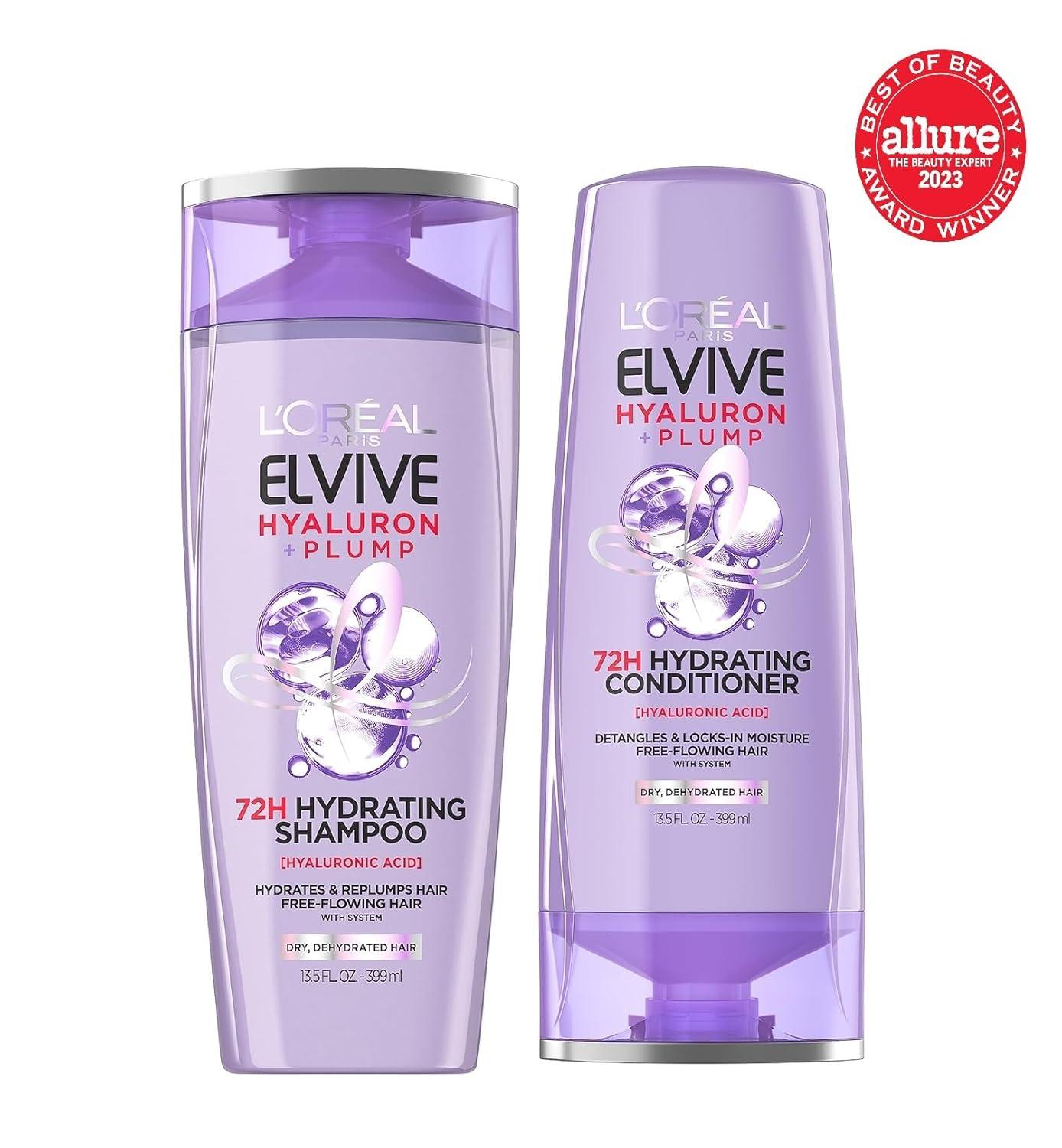 L’Oreal Paris Elvive Hyaluron Plump Hydrating Shampoo & Conditioner for Dehydrated, Dry Hair Infused with Hyaluronic Acid Care Complex, Paraben-Free, 12.6 Fl Oz