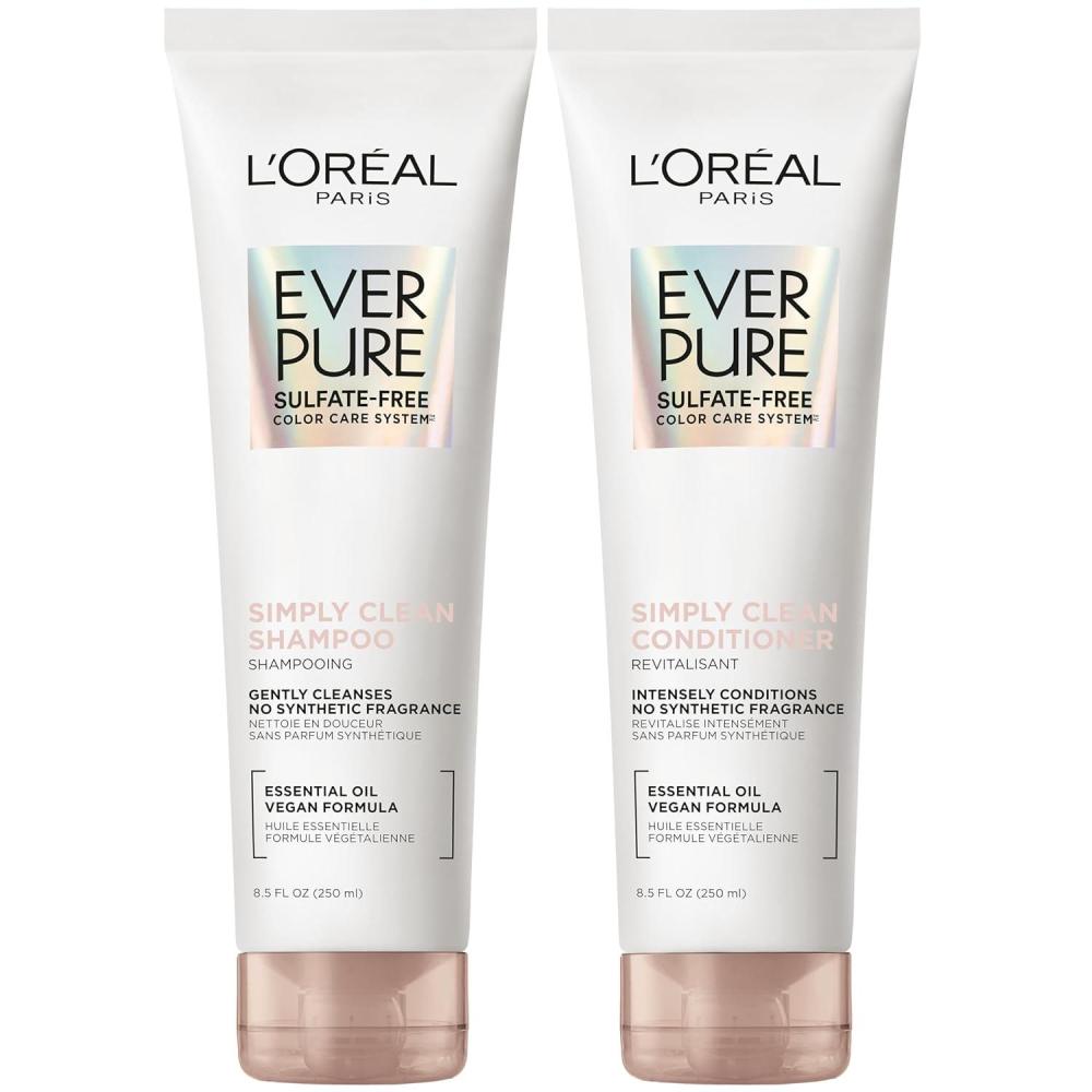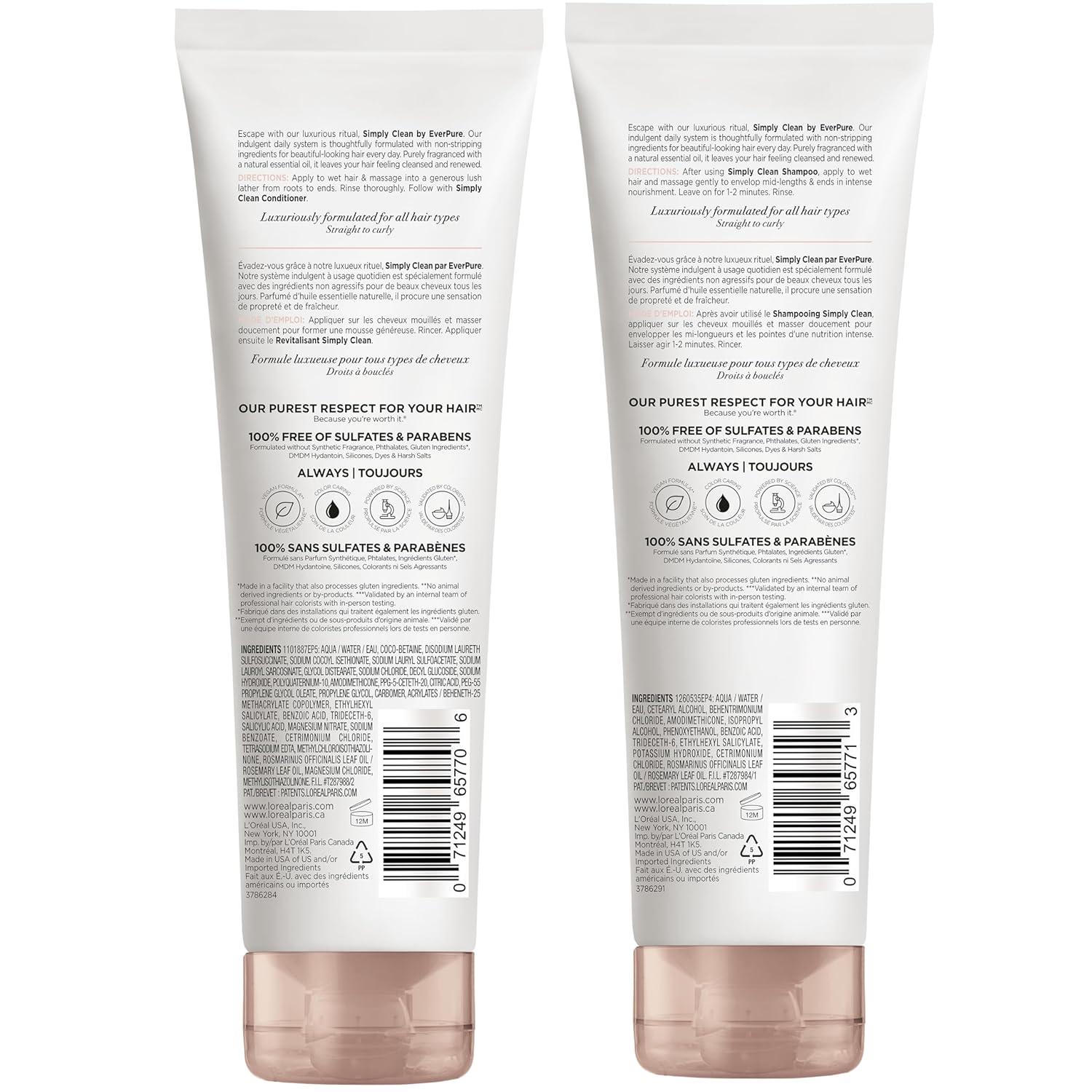 L’Oreal Paris EverPure Sulfate Free Simply Clean Shampoo and Conditioner Set, Hydrating Hair Care with Rosemary Essential Oils, 1 Kit (2 Products)(Everpure Simply Kit Amazon)