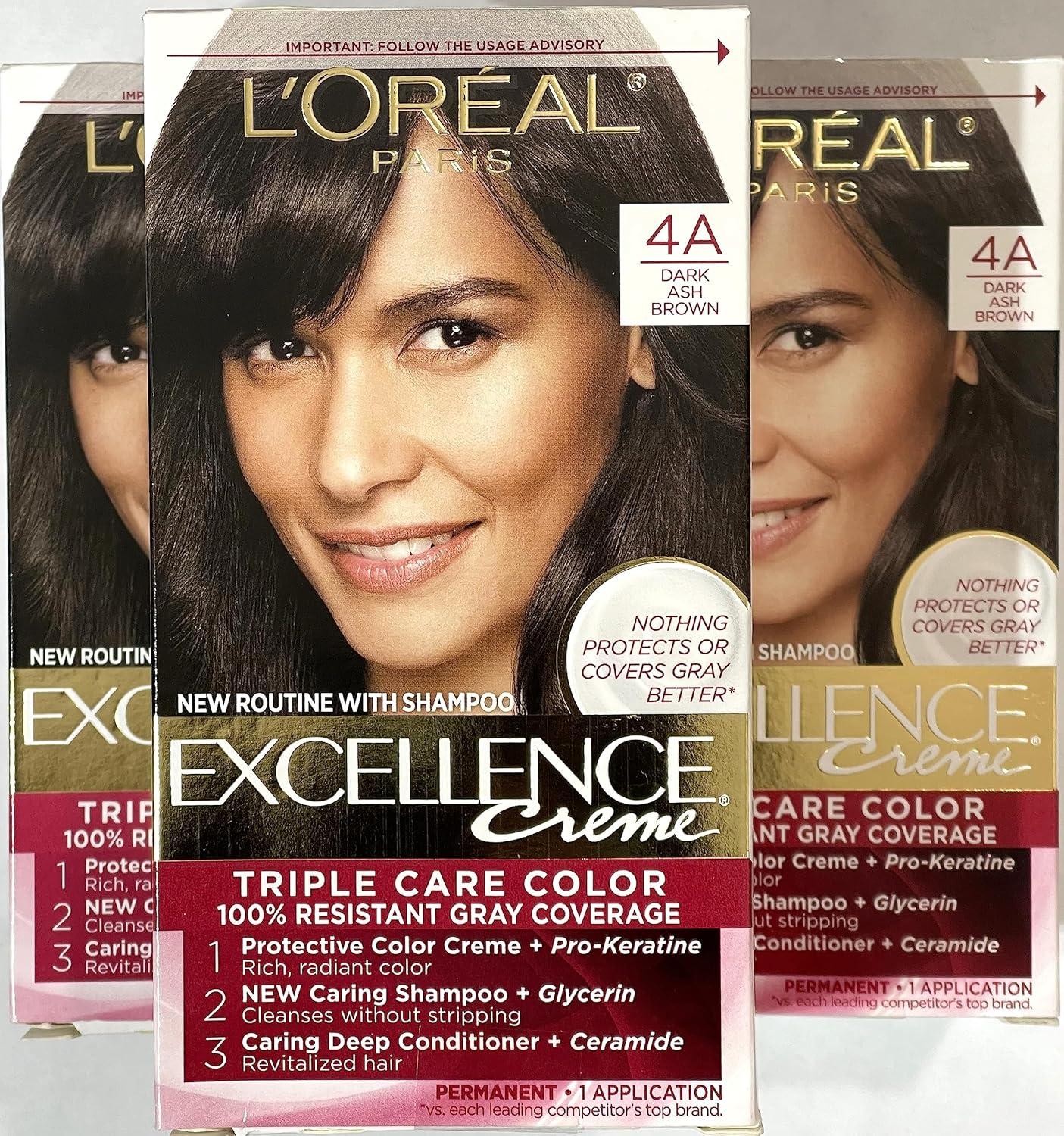 L'Oreal Paris Excellence Créme Permanent Hair Color, 4A Dark Ash Brown, Pack of 3(4A Dark Ash Brown)