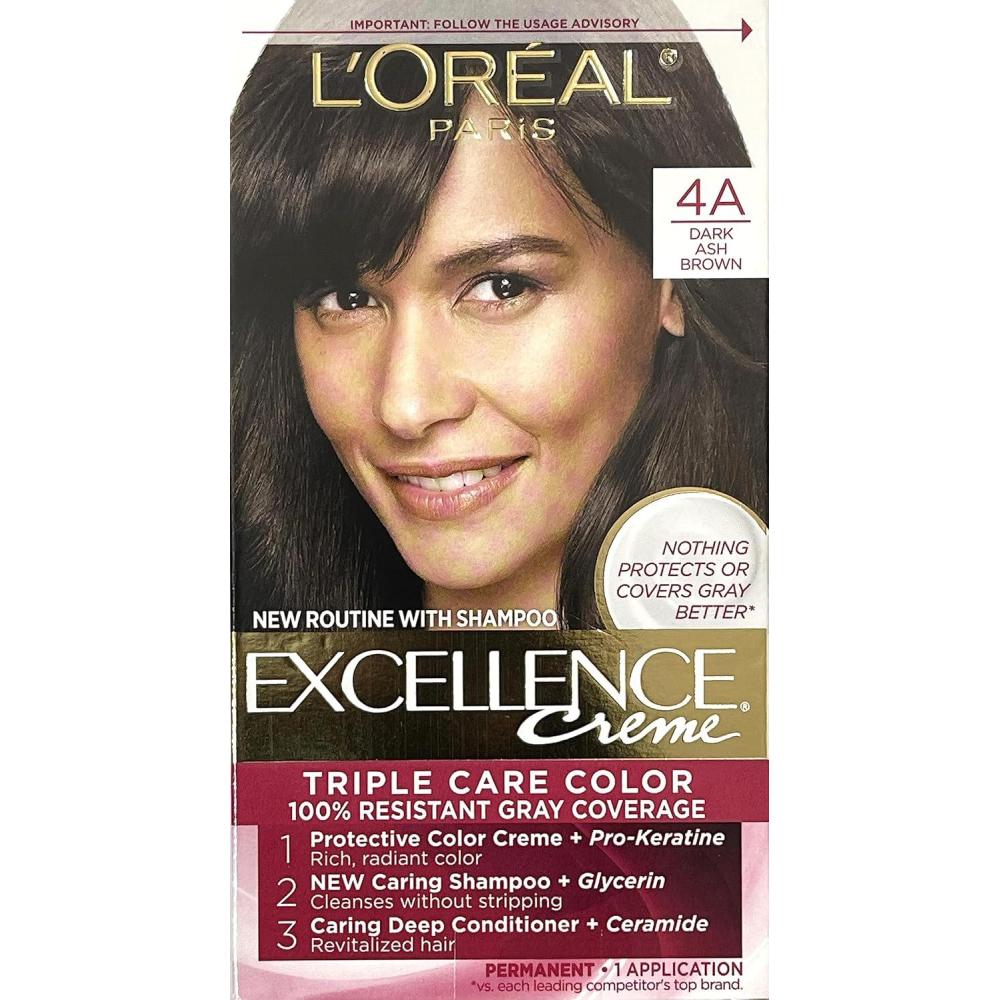 L’Oreal Paris Excellence Créme Permanent Hair Color, 4A Dark Ash Brown, Pack of 3(4A Dark Ash Brown)