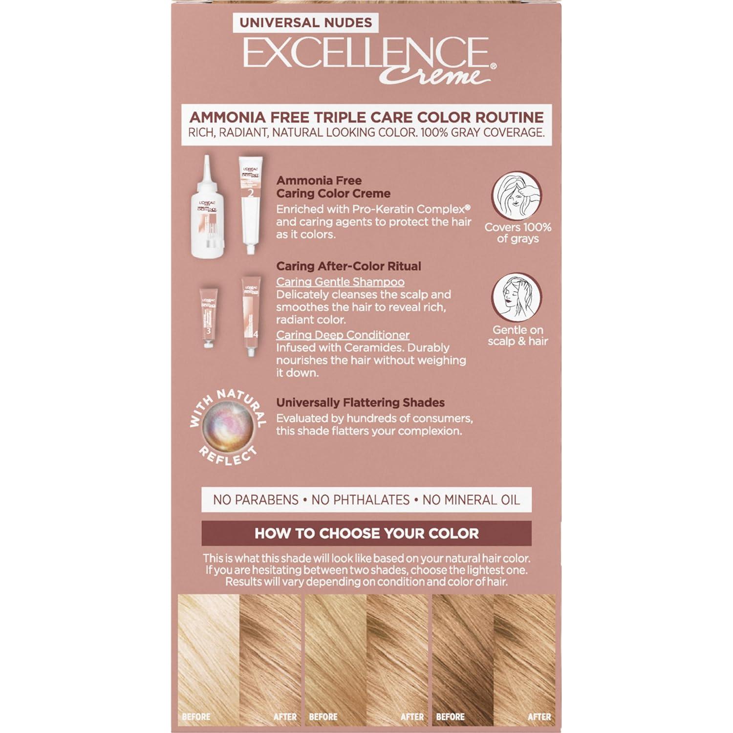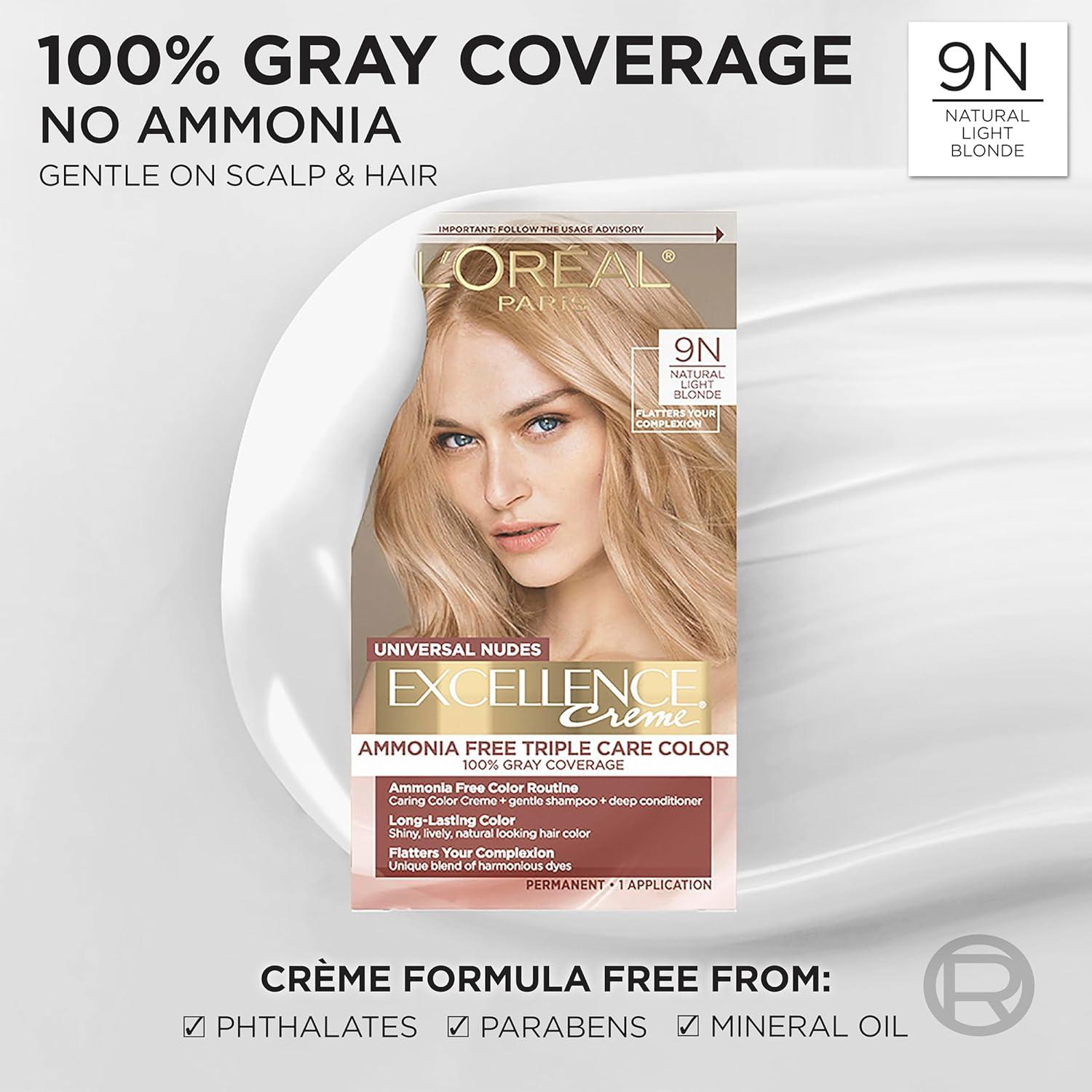 L’Oreal Paris Excellence Universal Nudes Permanent Hair Color, Ammonia Free Hair Dye for Gray Hair Coverage, 7N Natural Dark Blonde, 1 Kit (Pack of 2)(9N Natural Light Blonde)