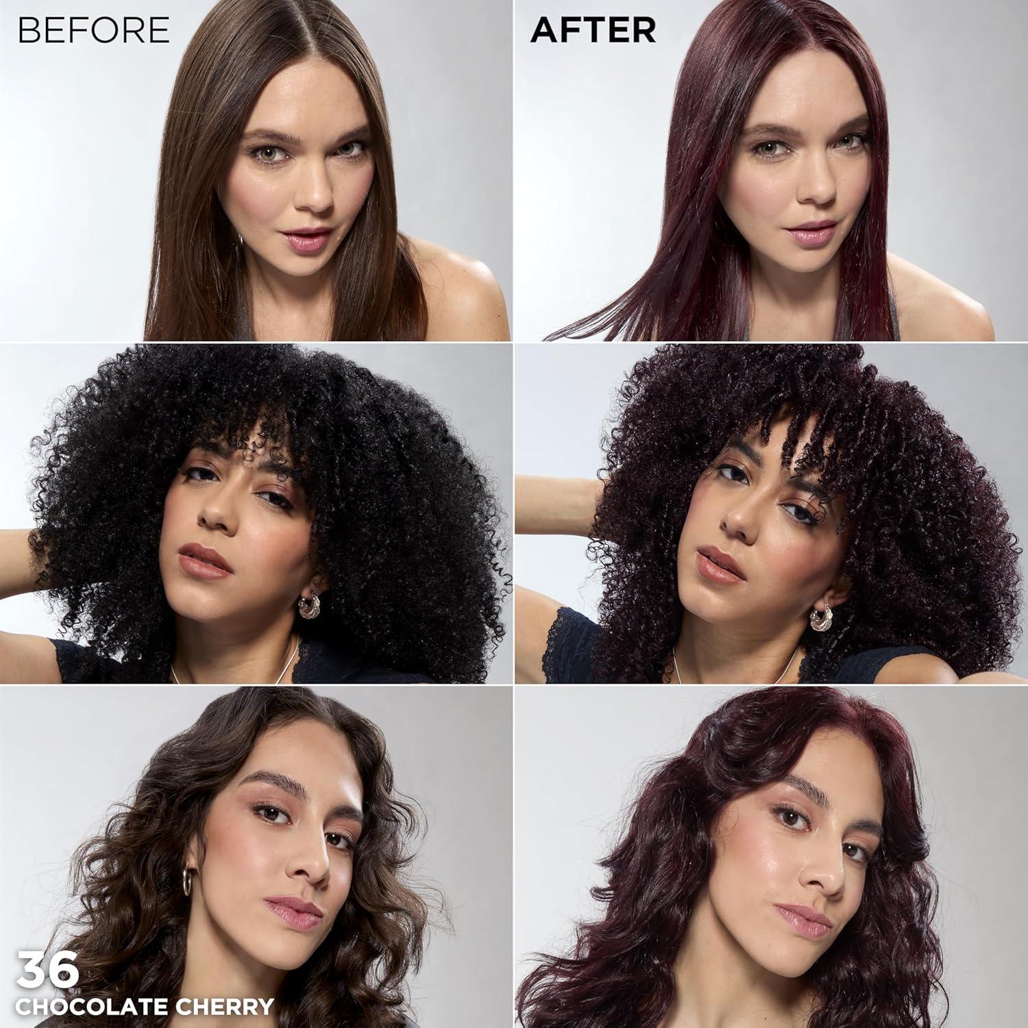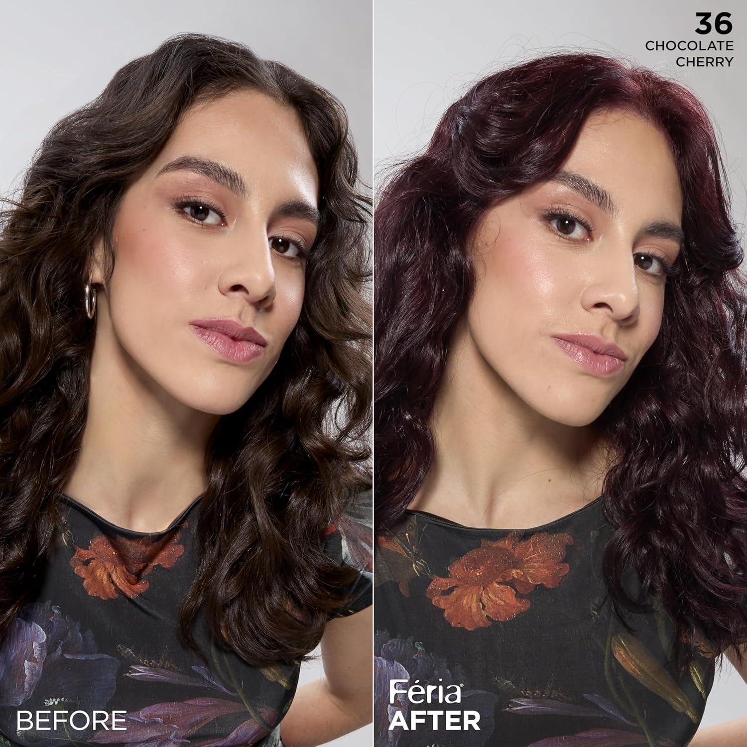 L’Oreal Paris Feria Multi-Faceted Shimmering Permanent Hair Color, High Intensity Hair Dye for 3X Highlights, 10 Jet Black (Blackest Black), 1 Hair Dye Kit(36 Deep Burgundy Brown (Chocolate Cherry))