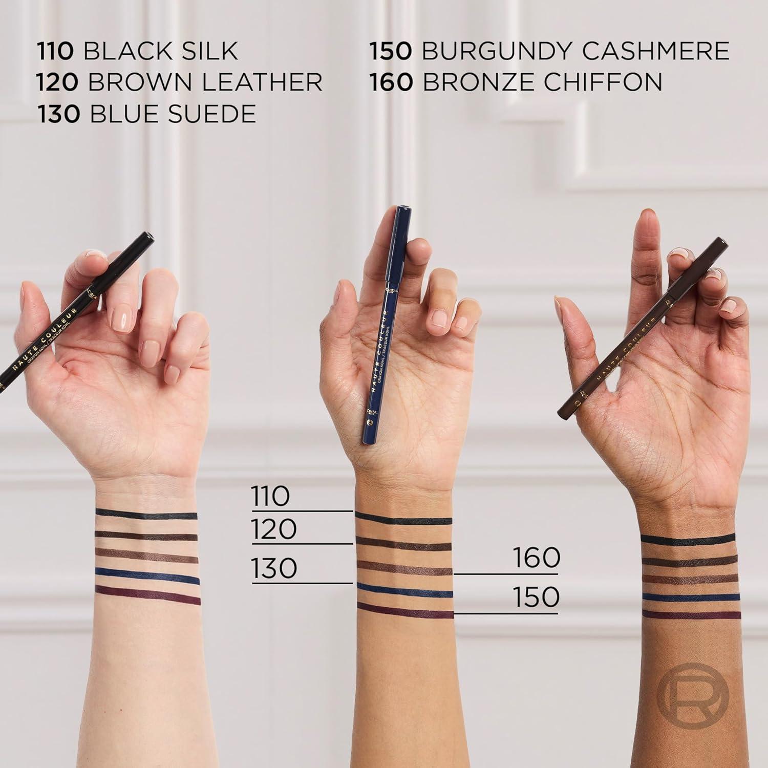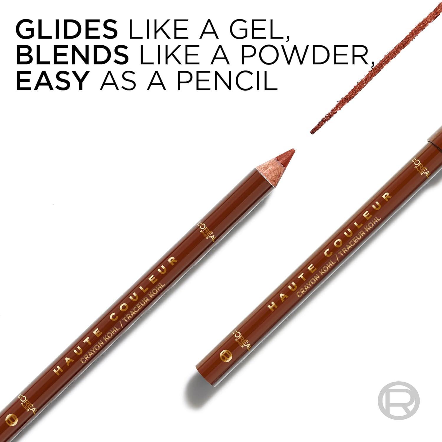 L'Oreal Paris Haute Couleur Kohl Eyeliner Pencil, Intense Eye Liner Color with Smooth Gel-Like Formula, Up To 12HR Eye Makeup Wear, 110 Black Silk(160 BRONZE CHIFFON)