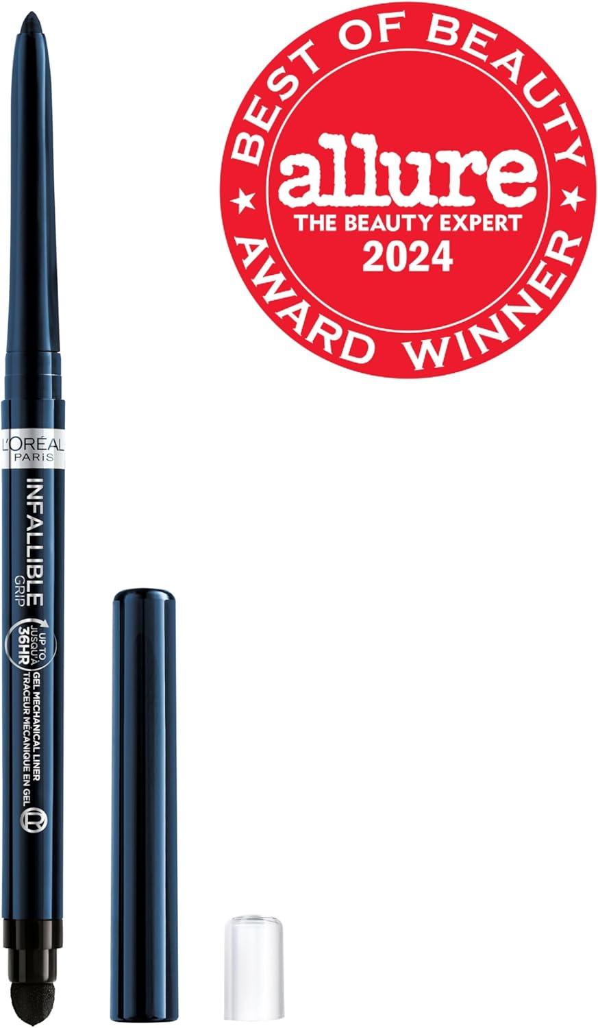 Up to 36HR wear. Easy Application. Waterproof, smudge-resistant. Define & line your eyes with saturated color that lasts. L’Oreal Paris’s Infallible Grip gel eyeliner glides effortlessly across lids to deliver a smudge-resistant, smooth line that lasts up to 36 hours. With six shades to choose from you can find a color with hyper-pigmented intensity for any classic or bold look.