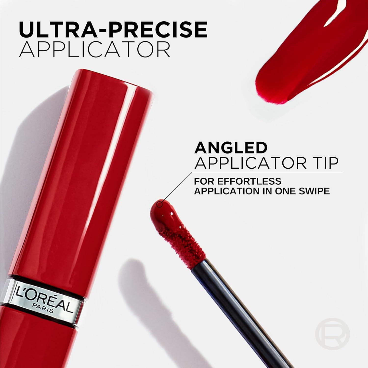 L'Oreal Paris Infallible Lacque Resistance Liquid Lipstick, 16HR Long Lasting Lip Makeup with Lacquer-Like Shine and Zero Transfer, 601, Worth It(Red Bisou)