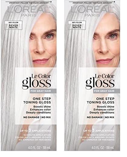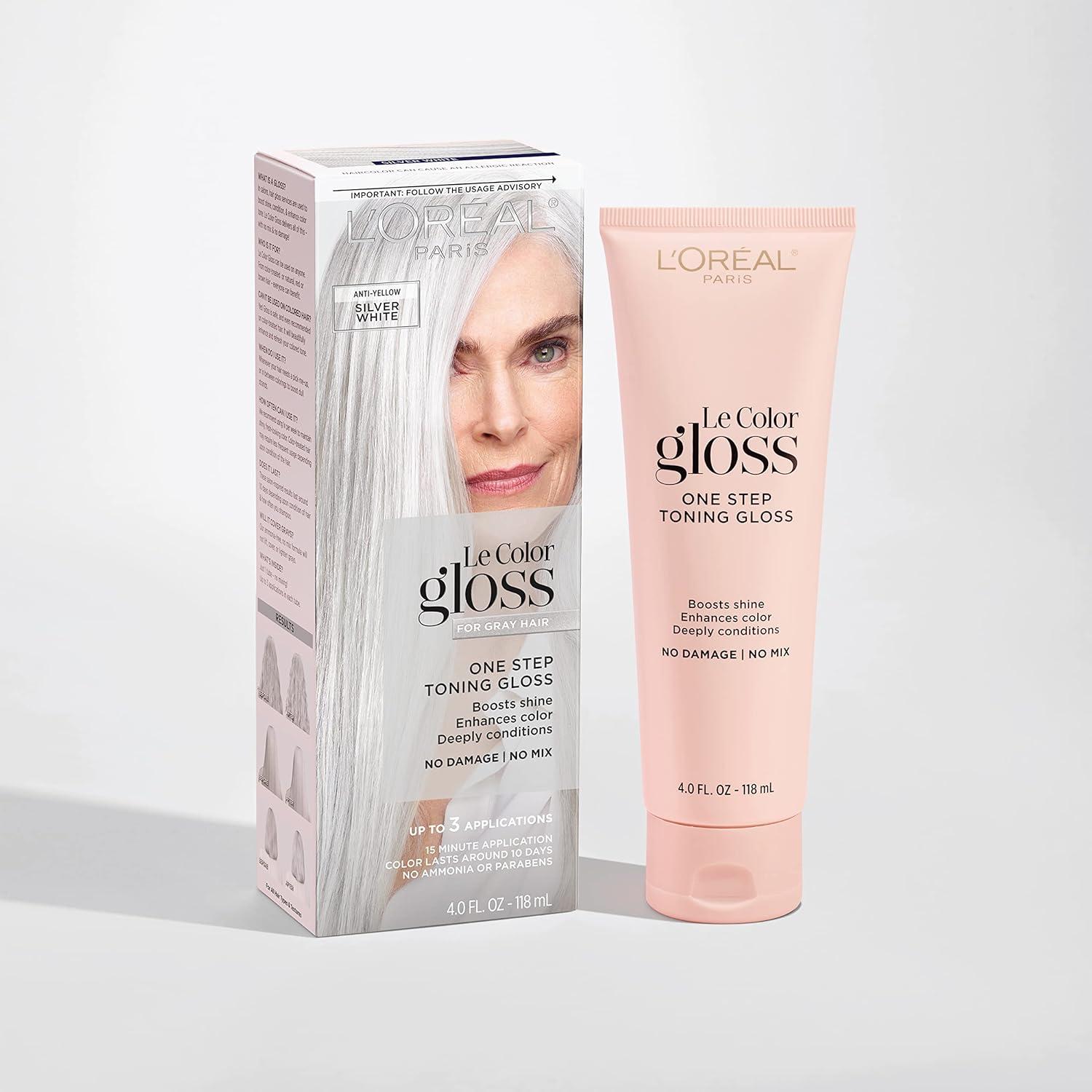 L'Oreal Paris Le Color Gloss One Step In-Shower Toning Hair Gloss, Neutralizes Brass, Conditions & Boosts Shine, Smoky Bronde, 4 Ounce(Silver White)