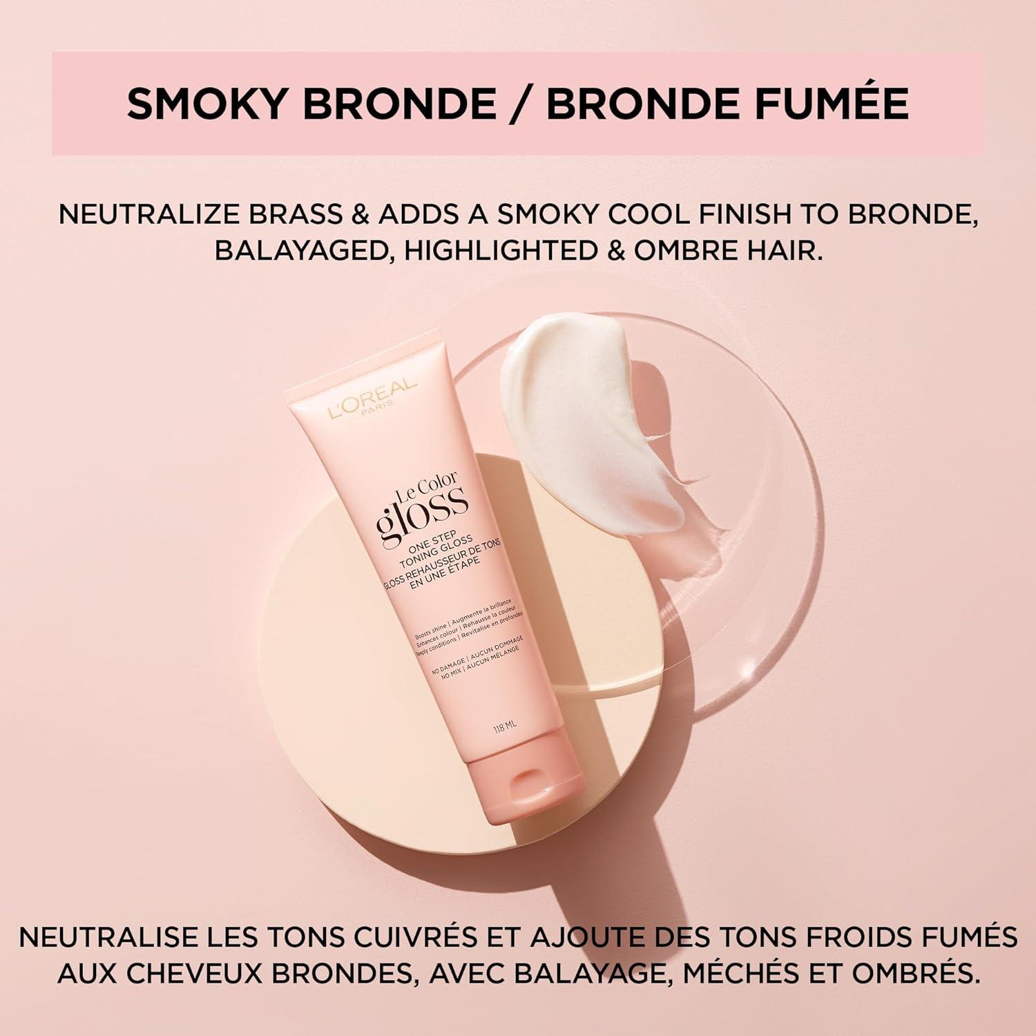 L’Oreal Paris Le Color Gloss One Step In-Shower Toning Hair Gloss, Neutralizes Brass, Conditions & Boosts Shine, Smoky Bronde, 4 Ounce(Silver White)