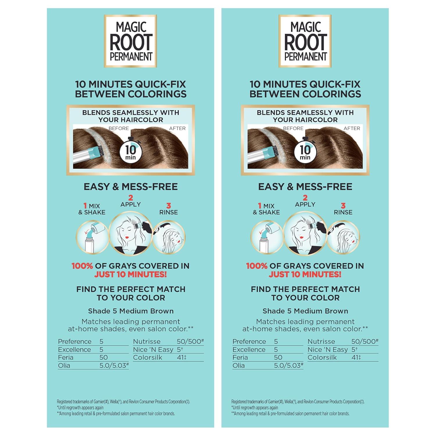 imageLOreal Paris Magic Root Rescue 10 Minute Root Hair Coloring Kit Permanent Color with Quick Precision Applicator 100 percent Gray Coverage 4 Dark Brown 1 kit Packaging May Vary5 Medium Brown