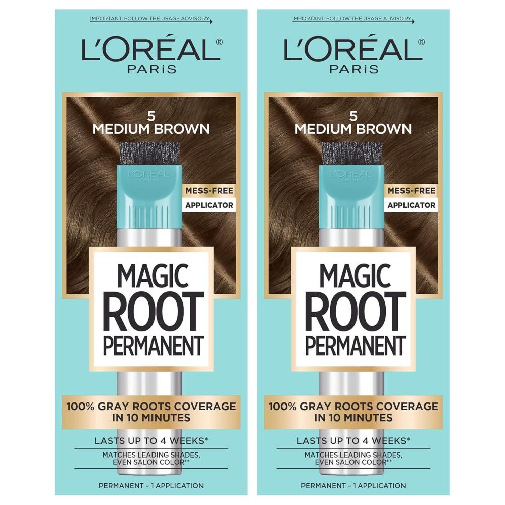 L'Oreal Paris Magic Root Rescue 10 Minute Root Hair Coloring Kit, Permanent Color with Quick Precision Applicator, 100 percent Gray Coverage, 4 Dark Brown, 1 kit (Packaging May Vary)(5 Medium Brown)