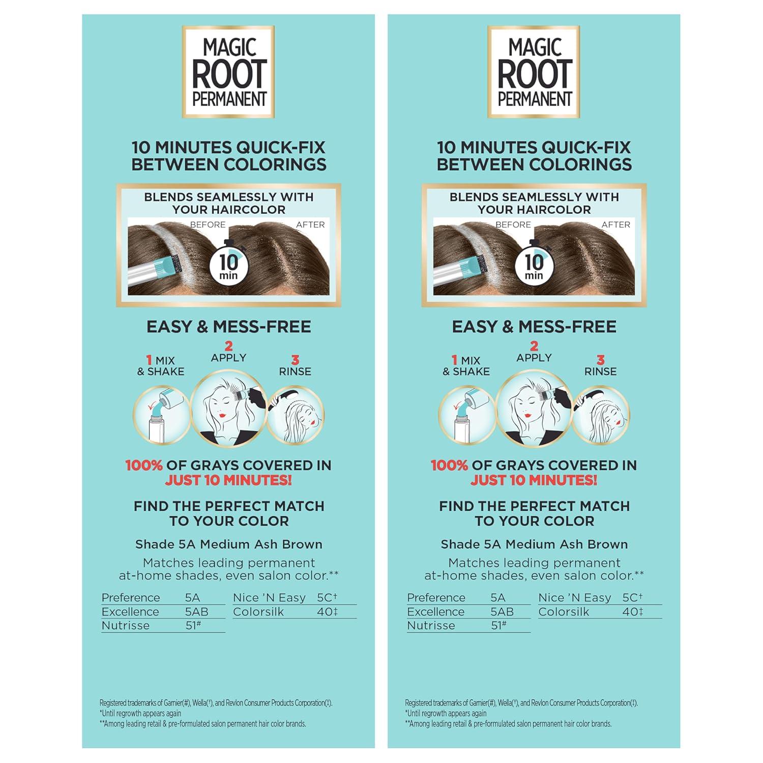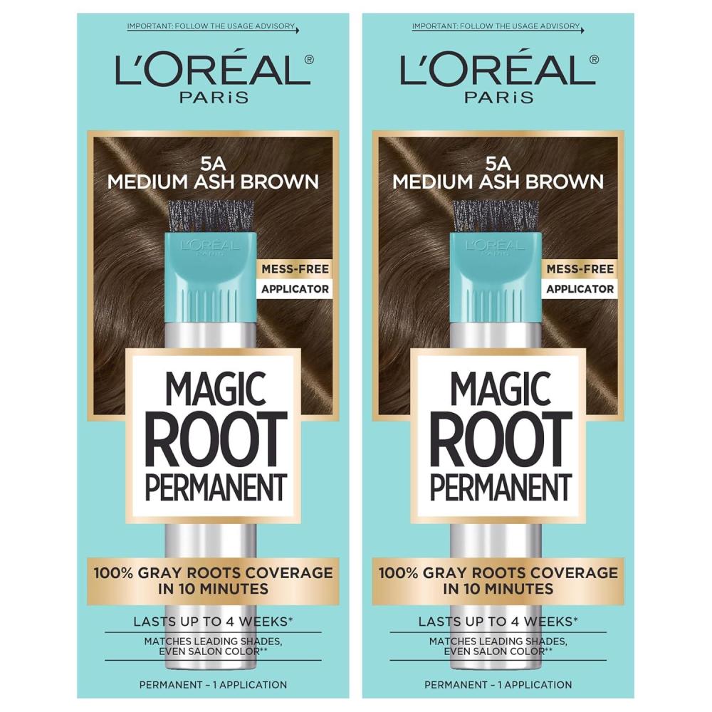 L'Oreal Paris Magic Root Rescue 10 Minute Root Hair Coloring Kit, Permanent Color with Quick Precision Applicator, 100 percent Gray Coverage, 4 Dark Brown, 1 kit (Packaging May Vary)(5A Medium Ash Brown)