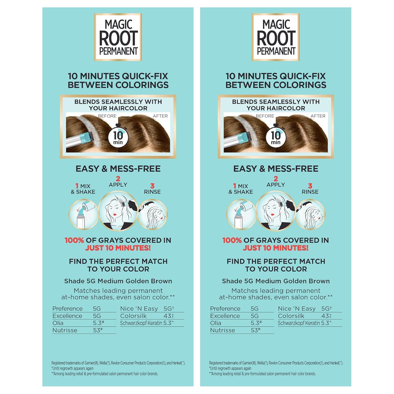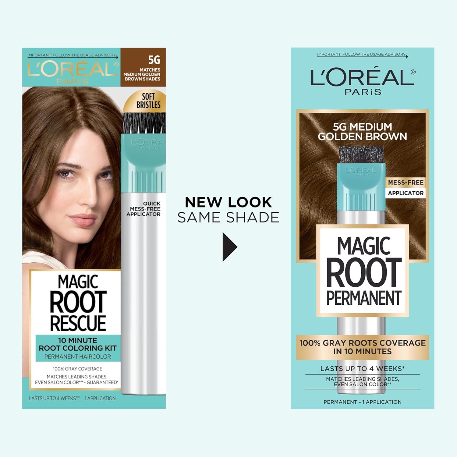 L'Oreal Paris Magic Root Rescue 10 Minute Root Hair Coloring Kit, Permanent Color with Quick Precision Applicator, 100 percent Gray Coverage, 4 Dark Brown, 1 kit (Packaging May Vary)(5G Medium Golden Brown)