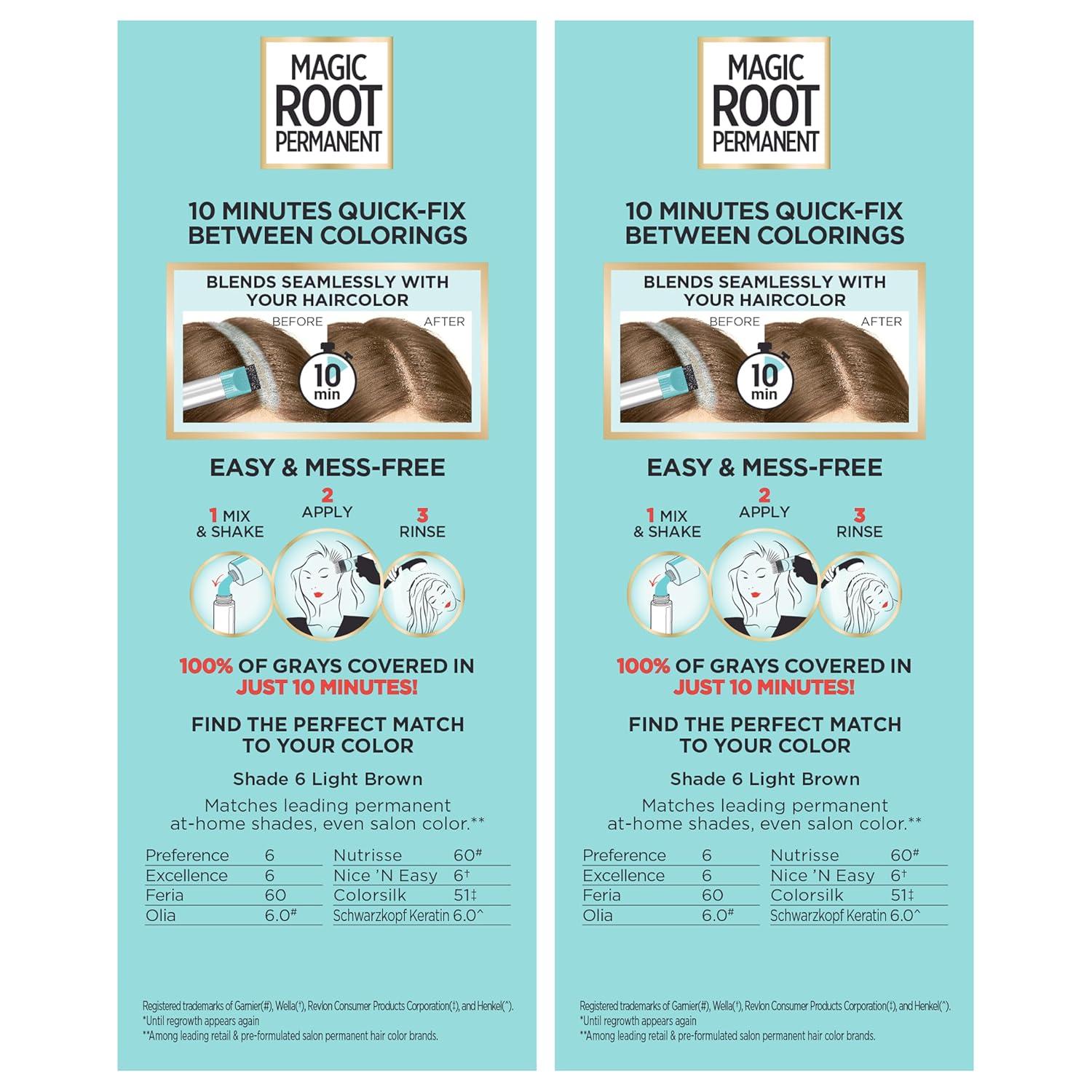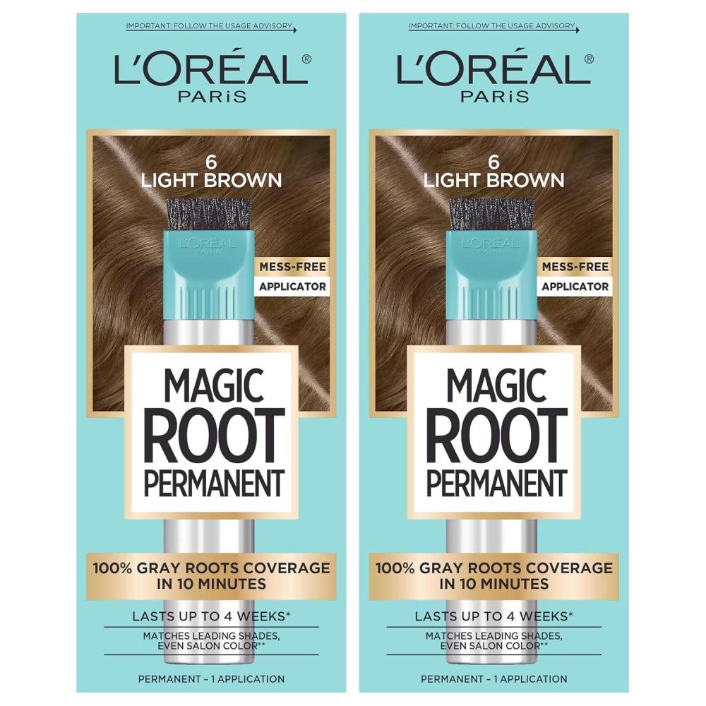 L'Oreal Paris Magic Root Rescue 10 Minute Root Hair Coloring Kit, Permanent Color with Quick Precision Applicator, 100 percent Gray Coverage, 4 Dark Brown, 1 kit (Packaging May Vary)(6 Light Brown)