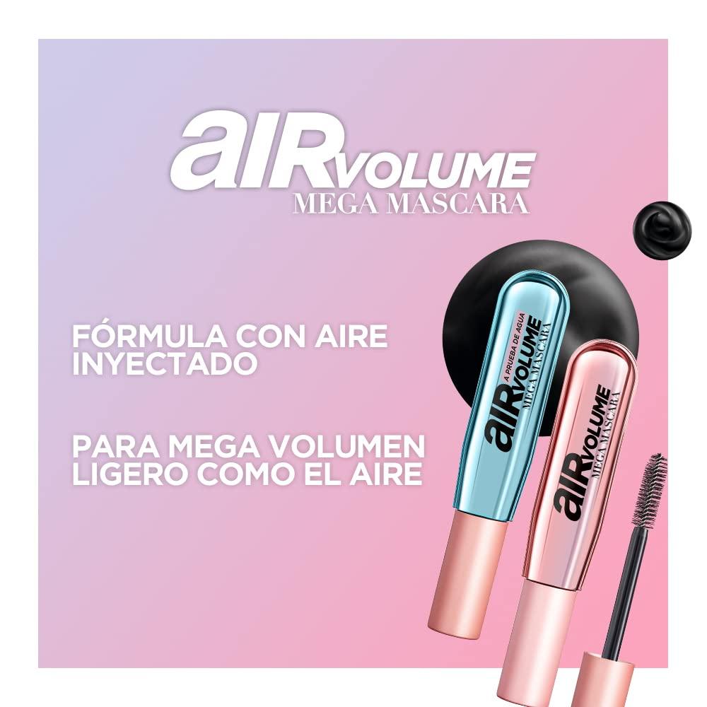 L'Oreal Paris Makeup Air Volume Mega Mascara, Lightweight & Long-lasting Volumizing Mascara for Voluminous Eyelashes, Waterproof Blackest Black, 0.3 Fl Oz(Waterproof Black)