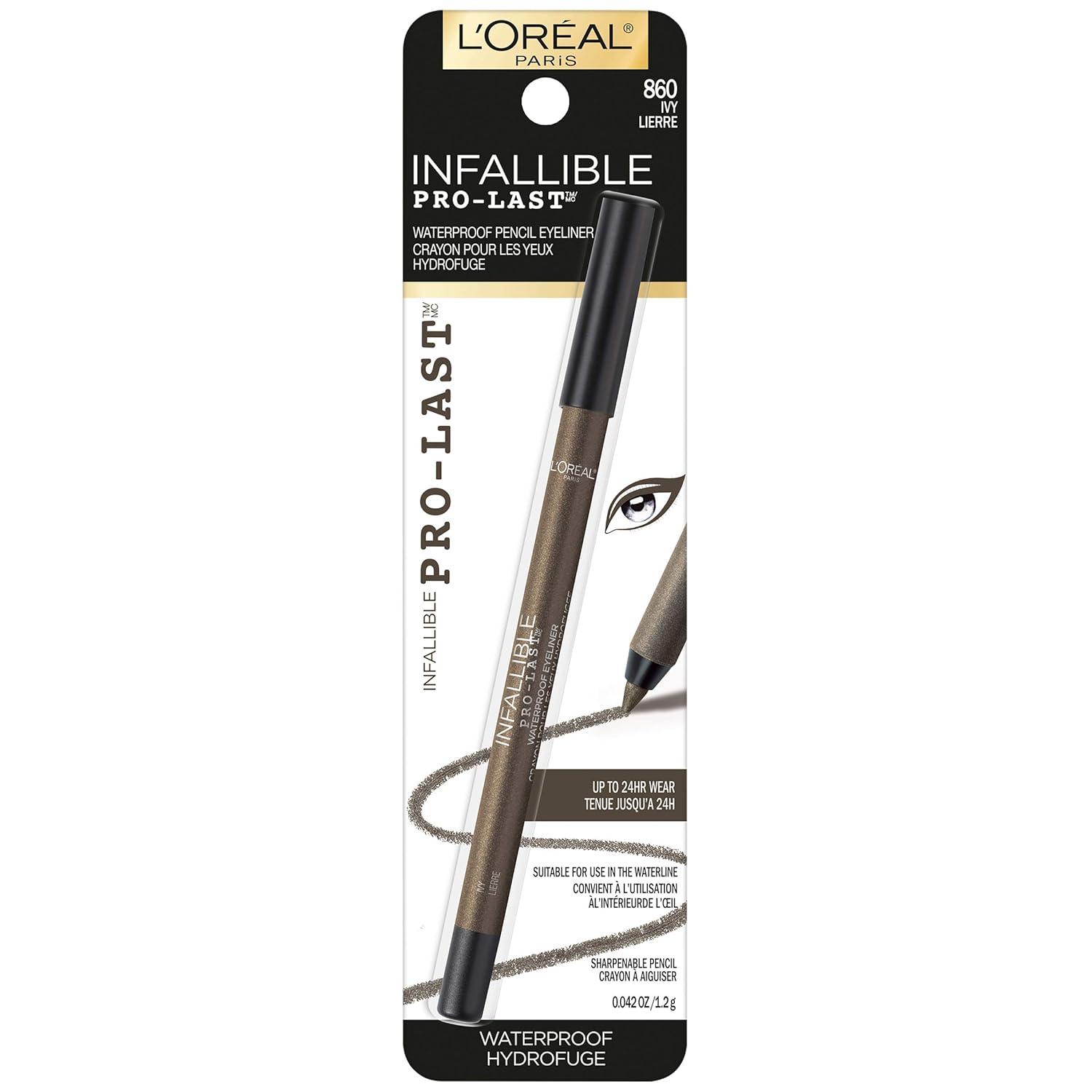 L’Oreal Paris Makeup Infallible Pro-Last Pencil Eyeliner, Waterproof and Smudge-Resistant, Glides on Easily to Create any Look, Black, 0.042 oz., 1 Count(Ivy)
