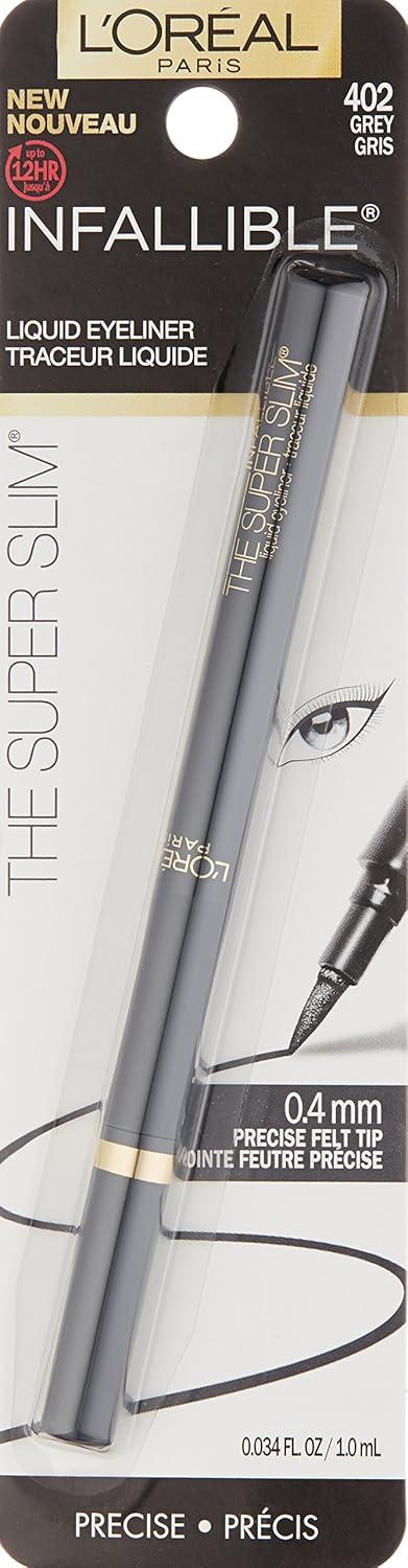 L’Oreal Paris Makeup Infallible Super Slim Long-Lasting Liquid Eyeliner, Ultra-Fine Felt Tip, Quick Drying Formula, Glides on Smoothly, Brown, 0.03 fl oz., 1 Count(Gray)