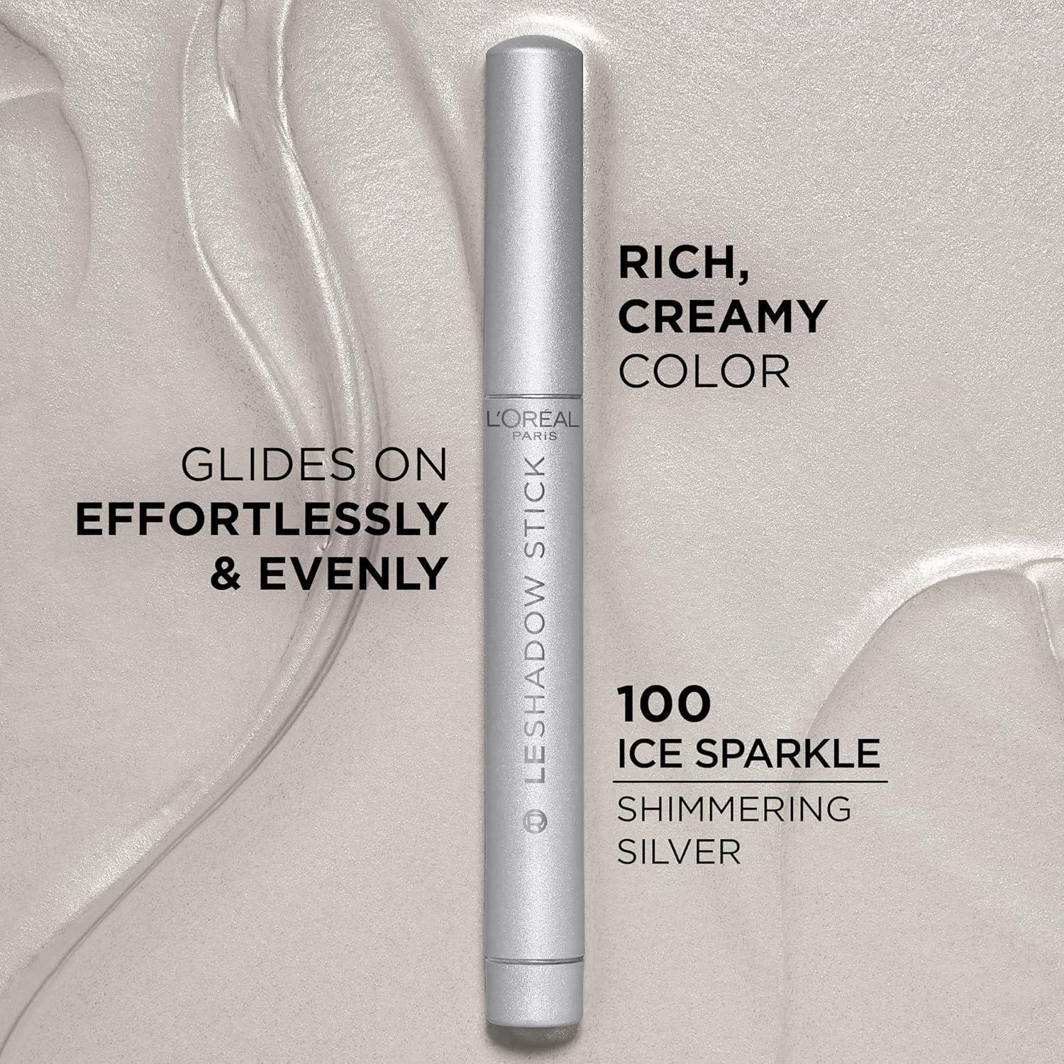 L'Oreal Paris Makeup Le Shadow Stick Eyeshadow, Blendable, Smudge-Resistant, Cream Eyeshadow, Twinkly Rose, 0.05 Oz(100 Ice Sparkle (Shimmering Silver))