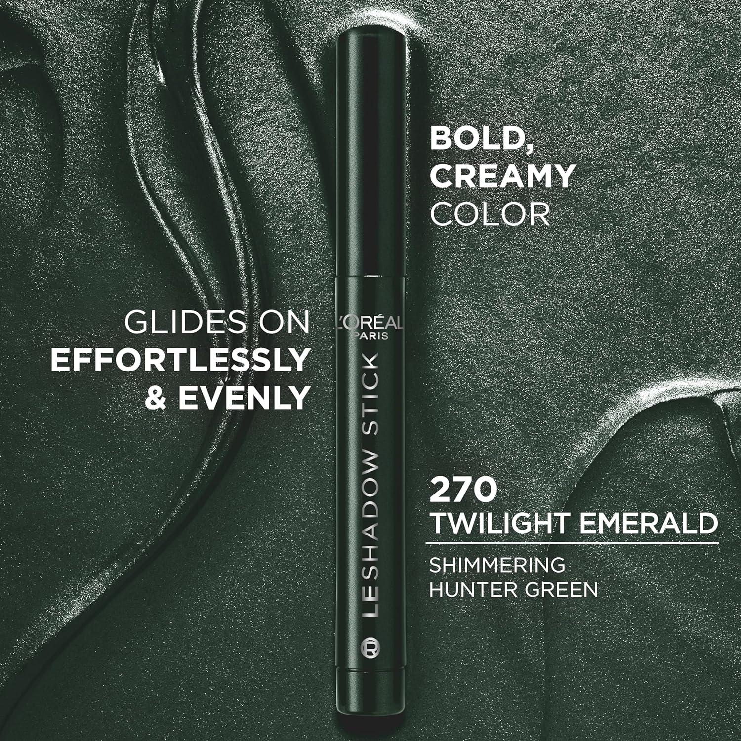 L'Oreal Paris Makeup Le Shadow Stick Eyeshadow, Blendable, Smudge-Resistant, Cream Eyeshadow, Twinkly Rose, 0.05 Oz(270 Twilight Emerald (Shimmering Green))