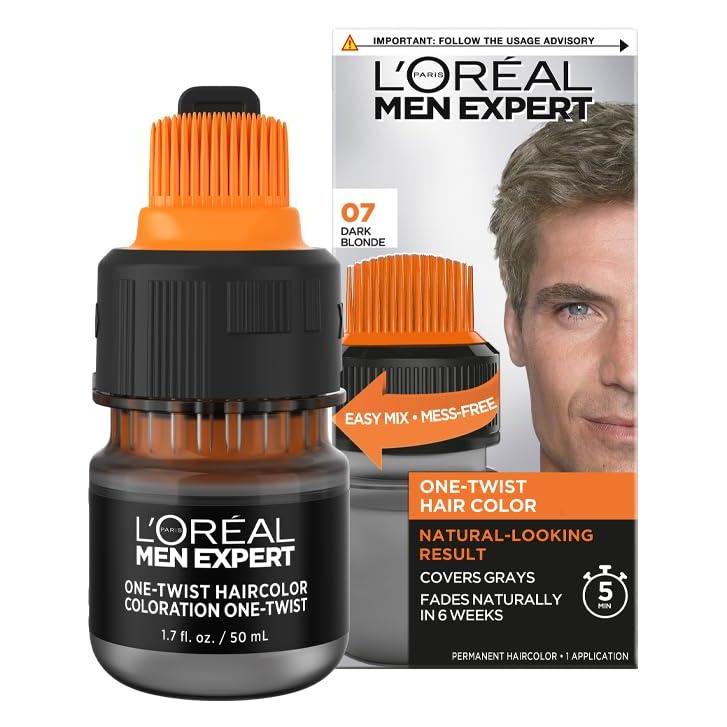 Easy and Mess Free Application: Our L'Oreal Men Expert hair dye is delivered in a patented ONE TWIST applicator. Simply twist, shake, crack and apply. Blends grays with your original hair color and fades naturally in 6 weeks