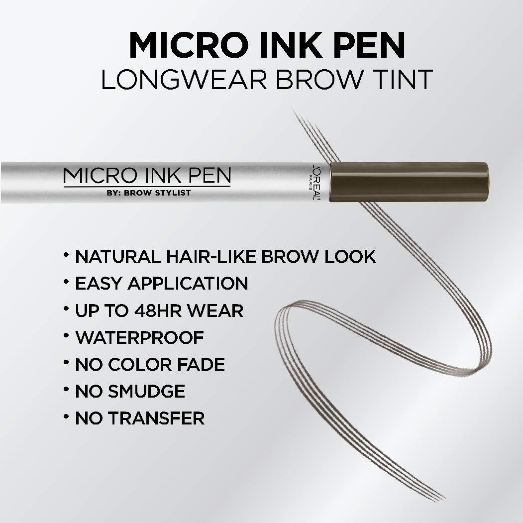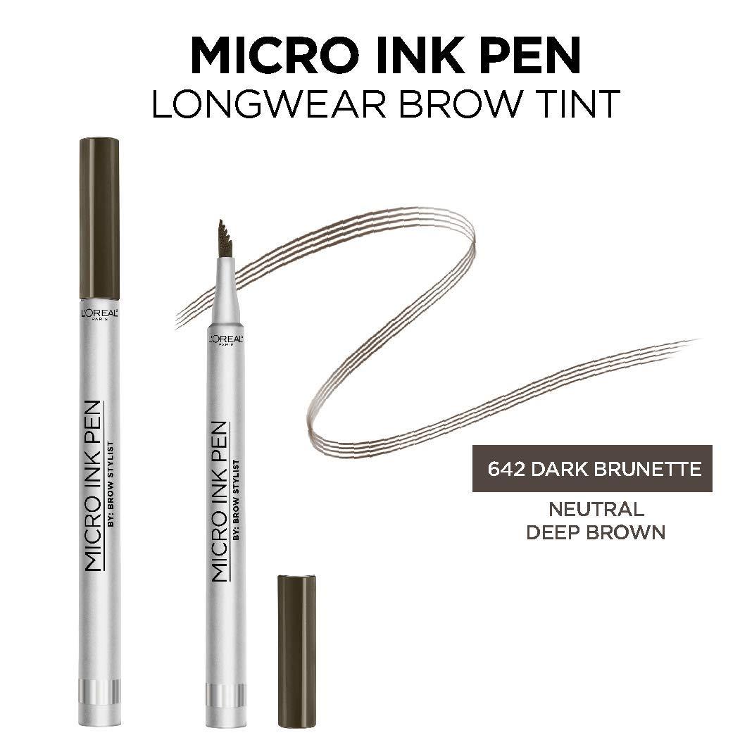 L’Oreal Paris Micro Ink Pen by Brow Stylist, Longwear Brow Tint, Hair-Like Effect, Up to 48HR Wear, Precision Comb Tip, Brunette, 0.033 fl; oz.(Dark Brunette)