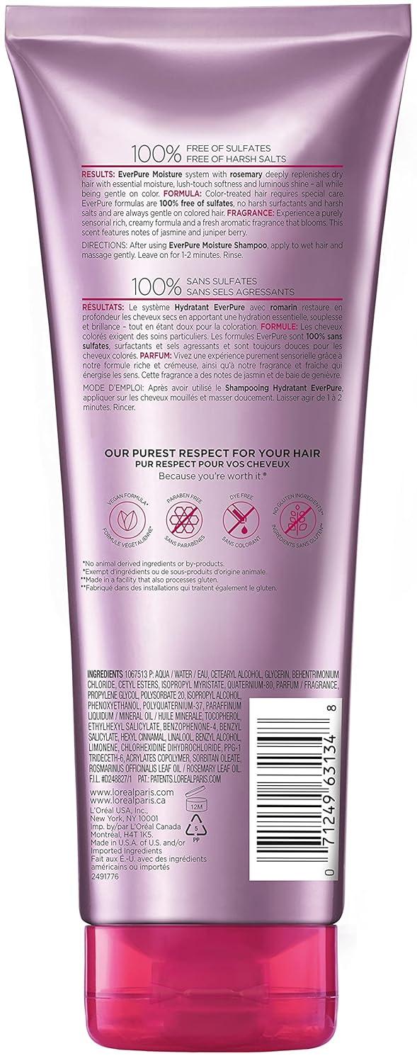 L’Oreal Paris Moisture Sulfate Free Shampoo and Conditioner Set, Hair Care for Color-Treated Hair with Rosemary Botanicals, EverPure, 1 Kit(PURPLE)
