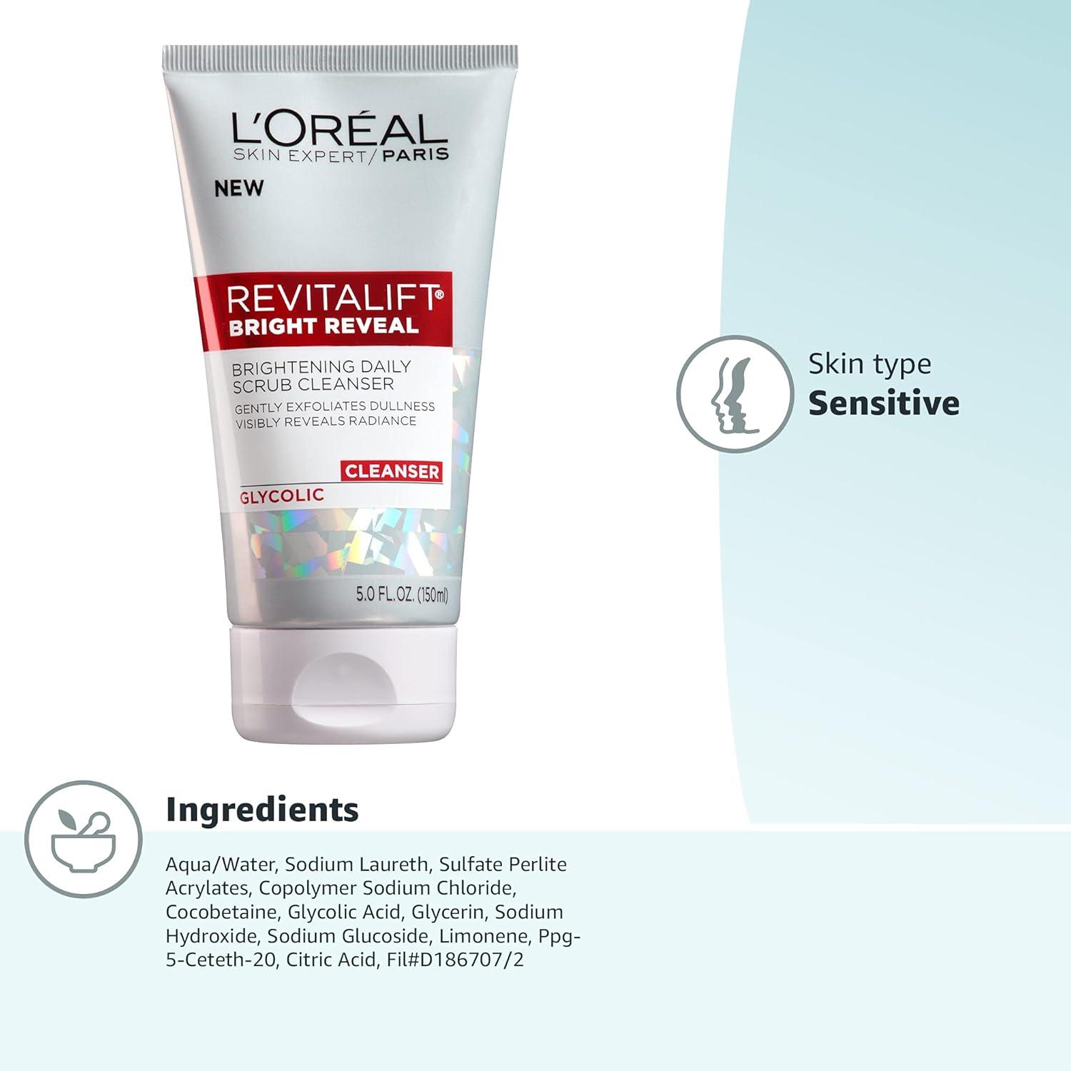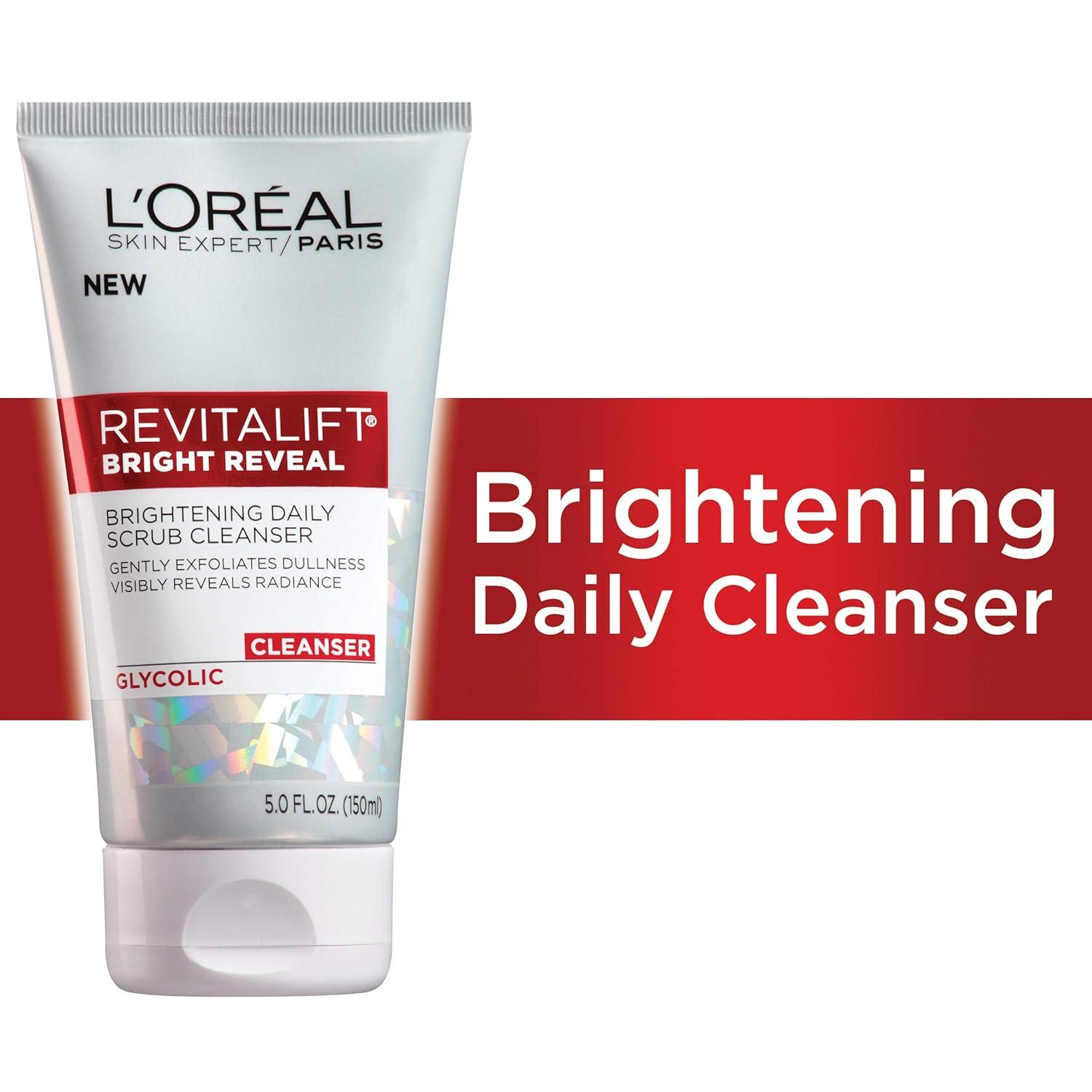 L’Oreal Paris Revitalift Bright Reveal Cleanser is a brightening daily scrub facial cleanser that gently exfoliates dullness and visible reveals radiance