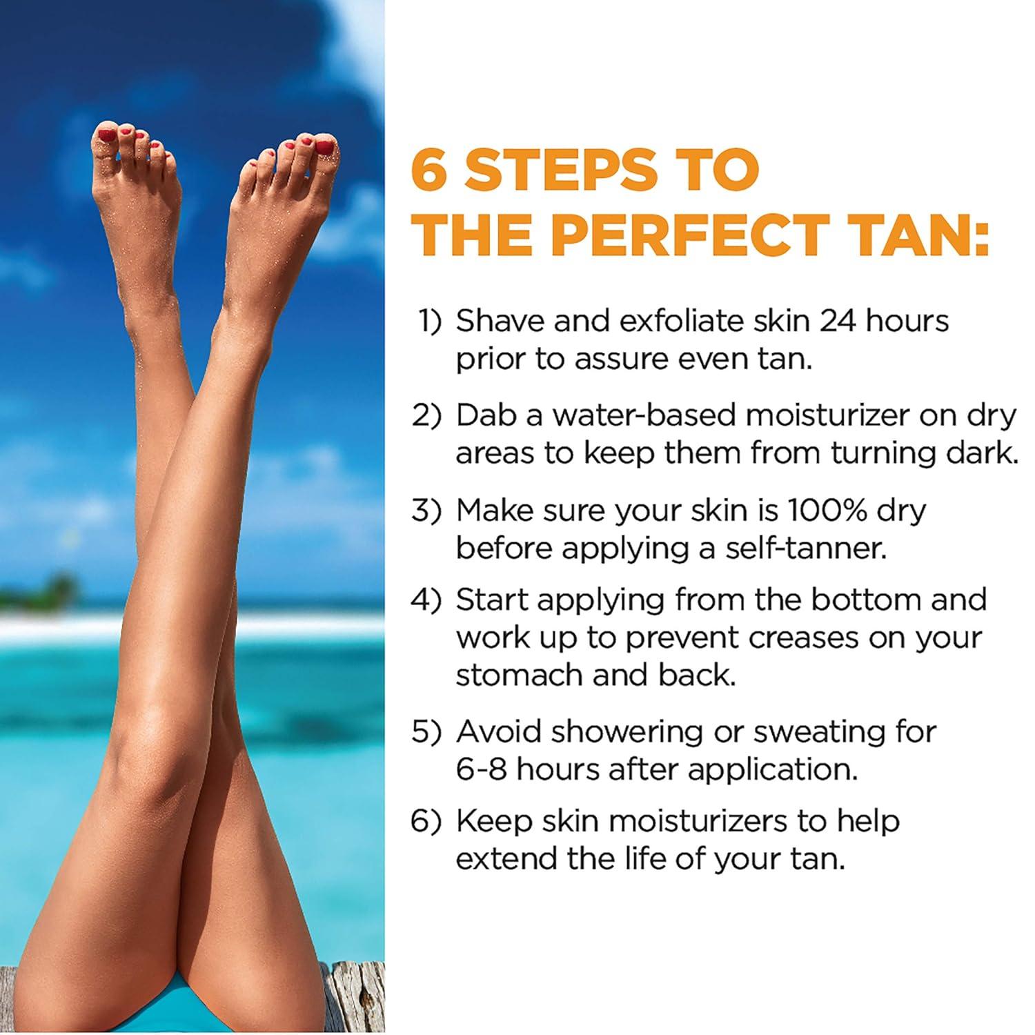 For best results, apply to cleansed and moisturized skin; apply evenly all over body, using sparingly around ankles, knees and elbows; wash hands thoroughly after use; let dry completely before putting on makeup or clothes