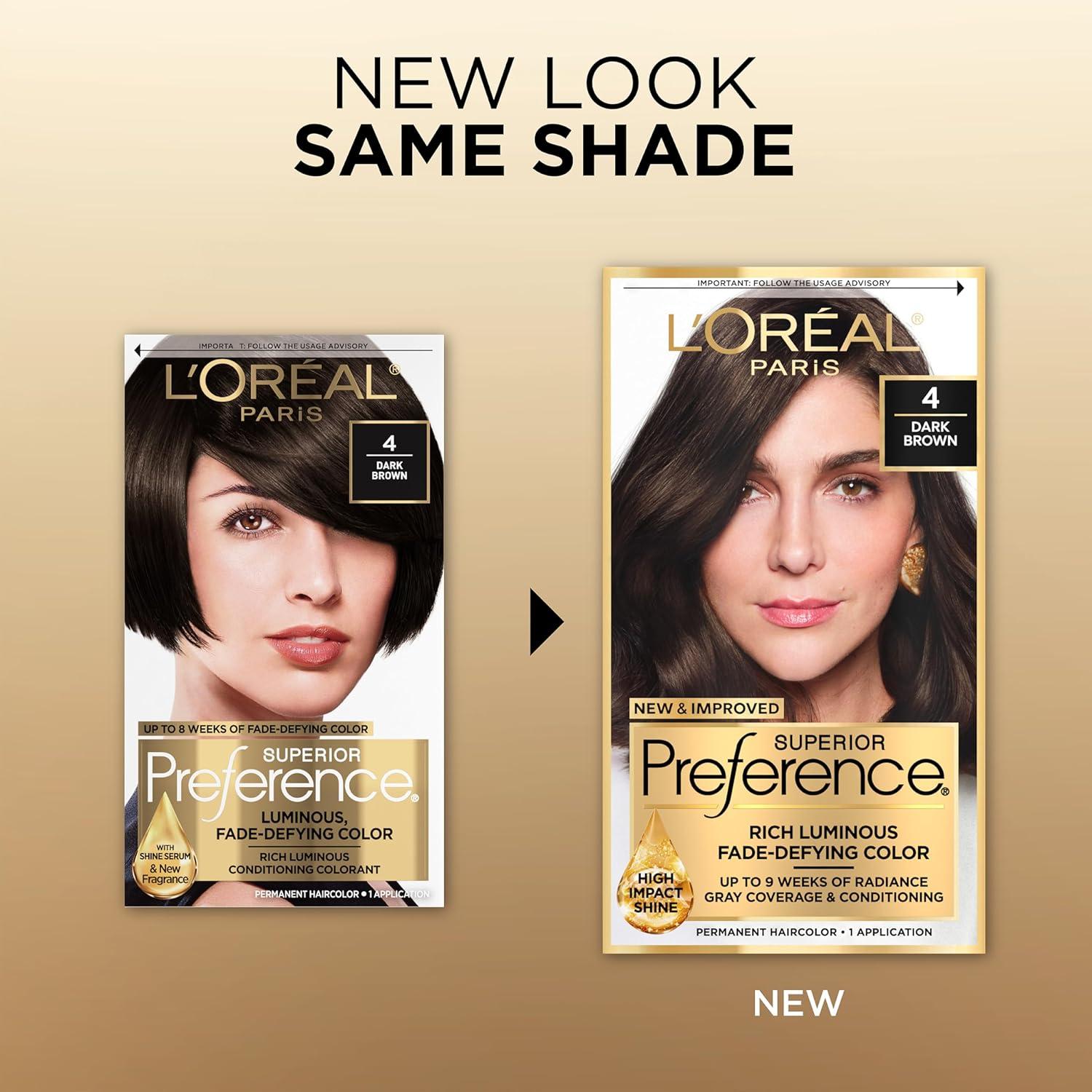L'Oreal Paris Superior Preference Fade-Defying + Shine Permanent Hair Color, 6AM Light Amber Brown, Pack of 1, Hair Dye(4 Dark Brown)