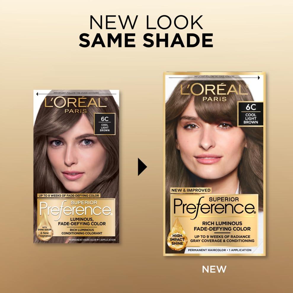 L'Oreal Paris Superior Preference Fade-Defying + Shine Permanent Hair Color, 6AM Light Amber Brown, Pack of 1, Hair Dye(6C Cool Light Brown)