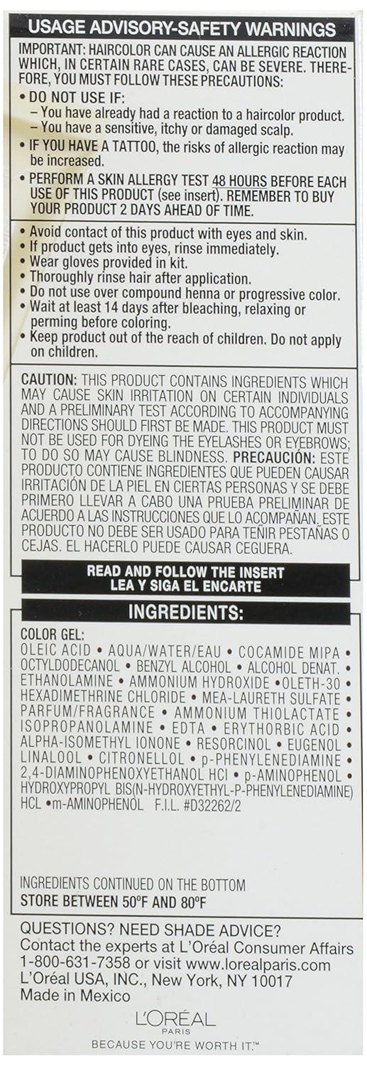 Important: Haircolor and bleaches contain ingredients which may cause allergic and/or other types of reactions. A skin allergy test is required 48 hours before each use of a haircolor product. Bleaches contain persulfates. Bleaches and high-lift haircolor shades cannot be used on relaxed hair; for other haircolor shades, wait at least 14 days after bleaching, relaxing or perming before coloring. This is a safety summary. Read all product labeling and instructions completely prior to use.