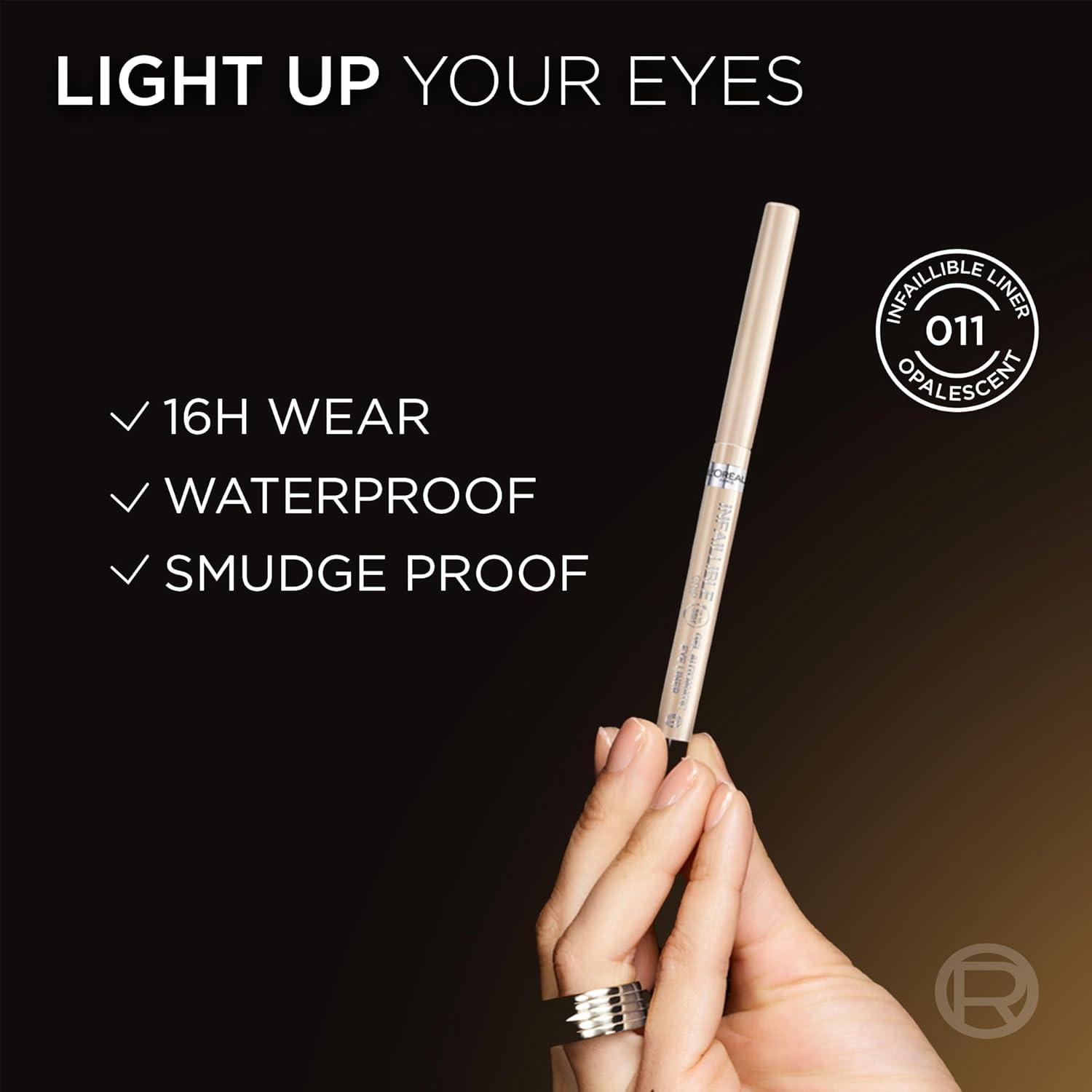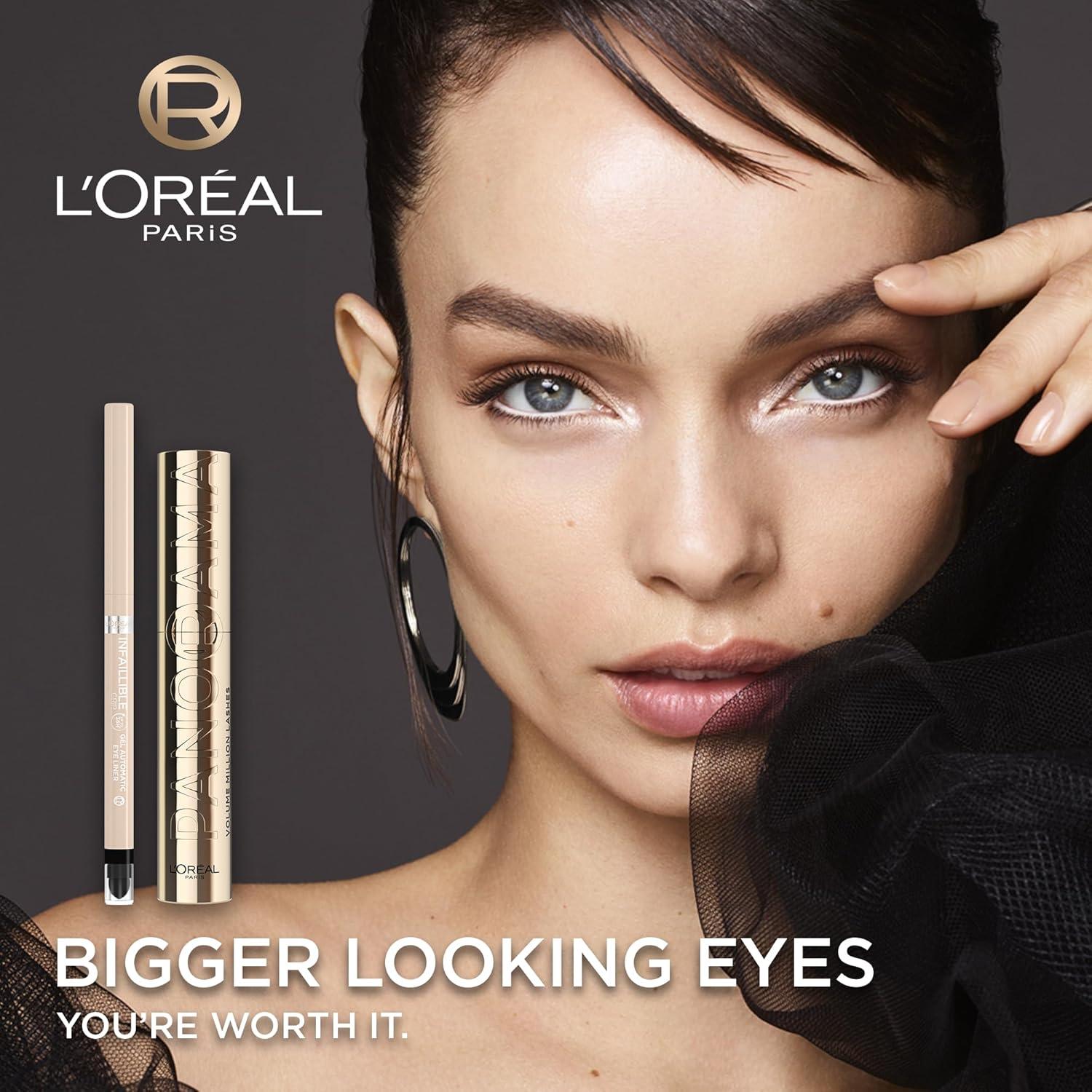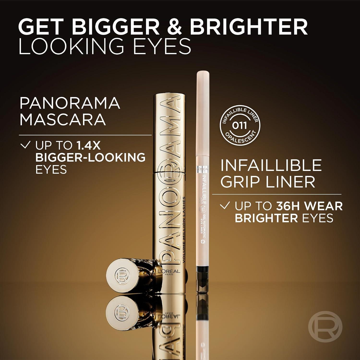 See 1.4x bigger and 36HR brighter looking eyes with our makeup duo – featuring our L'Oreal Paris Voluminous Panorama Mascara in Blackest Black and our Infallible Grip Mechanical Gel Eyeliner Pencil in Opalescent Bright Nude. This eyeliner delivers even strokes with 36HR hold, with a smudge-resistant, waterproof eyeliner pencil formula. This eyeliner pencil glides on smoothly with no mess and no touch-ups. Follow with our Panorama Mascara, featuring a volume and length brush that easily grabs each lash from inner to outer corner for even application from root to tip. 5% stretchflex complex formula wraps each lash with flexible, defined, lash by lash volume.